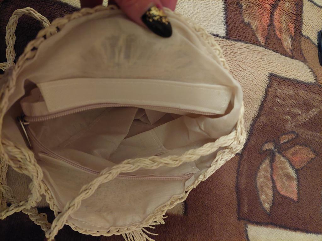 Um pouco macio e bem leve (parece ráfia) e totalmente forrado com zíper uma pequena bolsa de férias para levar em todos os lugares