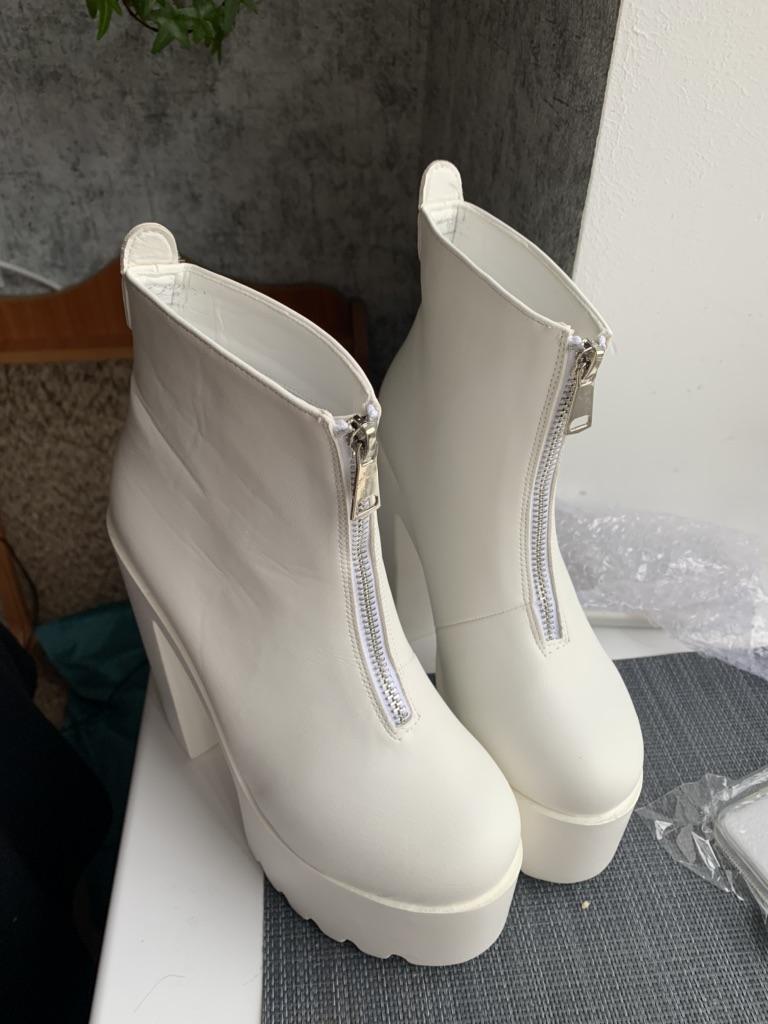 Moda outono mulheres tornozelo botas de couro preto feminino sapatos de salto alto ultra alta plataforma