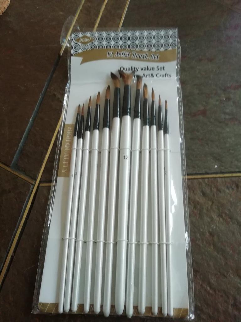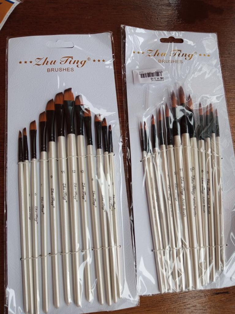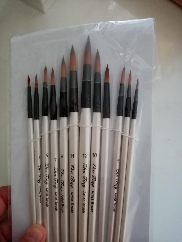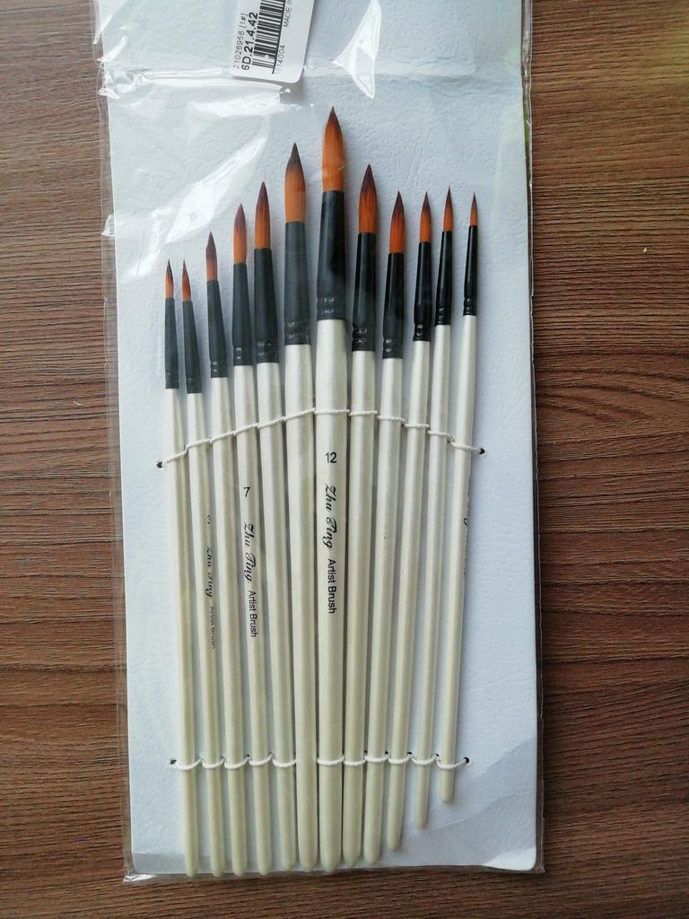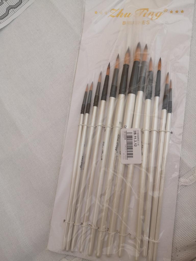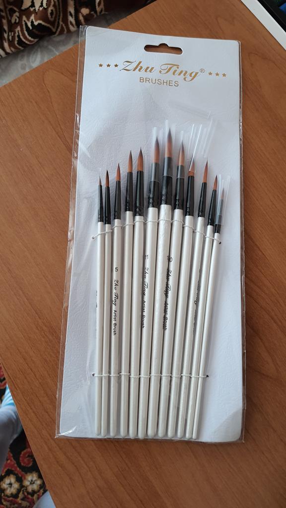 Peguei meus ossos. Duas semanas se passaram. Estou completamente satisfeito com o produto. Bem embalado, tudo intacto. O conjunto contém 12 unidades. O produto é muito legal por um preço tão baixo. Eu uso para tintas acrílicas. Mas adequado para todos os tipos de tintas. O design é bom. Vale até para presente, pois a embalagem é caprichada. As escovas são redondas e não perdem a forma após a lavagem. Os cabelos não saem. Porque não aguento quando pinto e fica um fio de cabelo do cisto na tela. E então você precisa remover a imagem danificada. E esses ossos combinam perfeitamente comigo. Obrigado ao vendedor pelo produto. Tudo está bem.
