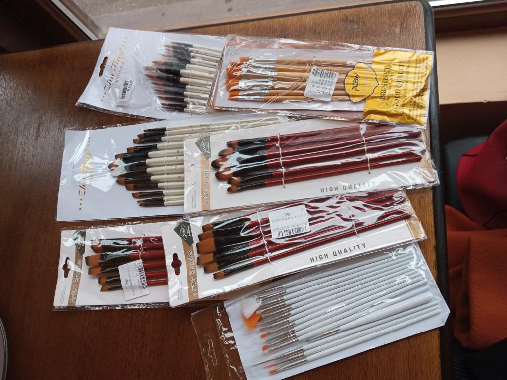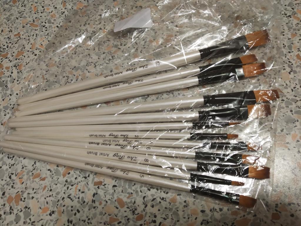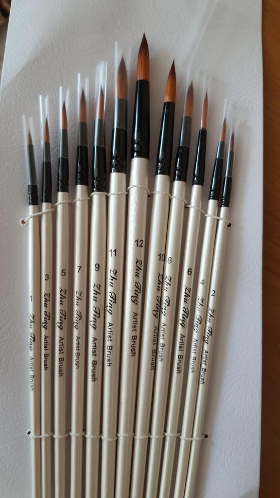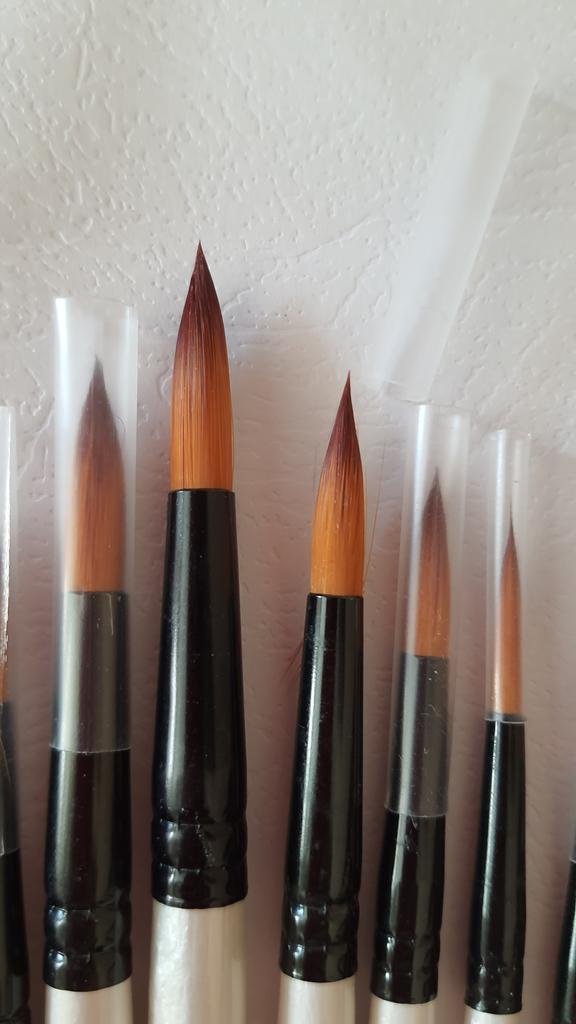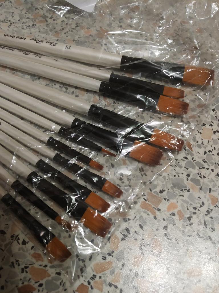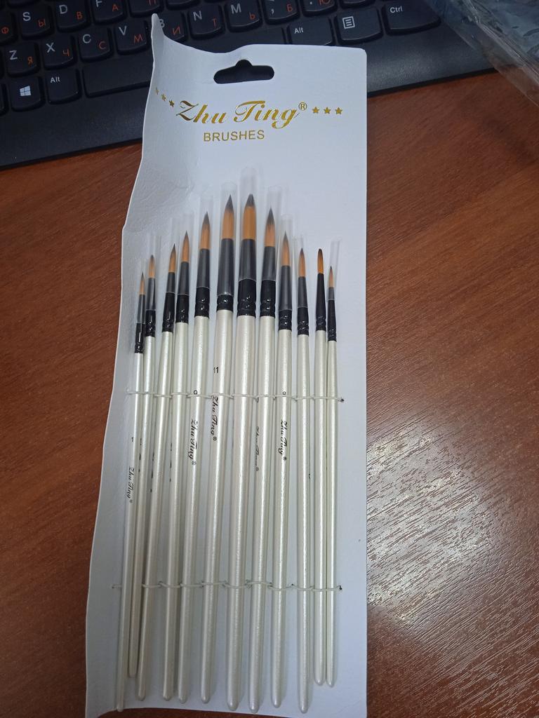 Peguei meus ossos. Duas semanas se passaram. Estou completamente satisfeito com o produto. Bem embalado, tudo intacto. O conjunto contém 12 unidades. O produto é muito legal por um preço tão baixo. Eu uso para tintas acrílicas. Mas adequado para todos os tipos de tintas. O design é bom. Vale até para presente, pois a embalagem é caprichada. As escovas são redondas e não perdem a forma após a lavagem. Os cabelos não saem. Porque não aguento quando pinto e fica um fio de cabelo do cisto na tela. E então você precisa remover a imagem danificada. E esses ossos combinam perfeitamente comigo. Obrigado ao vendedor pelo produto. Tudo está bem.