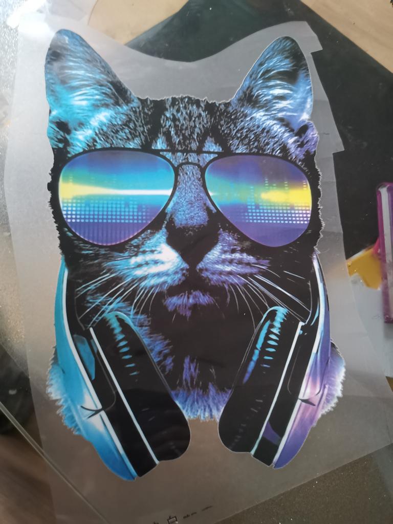 Ótimas cores, bom contorno. Passa facilmente e bem. Prensas: Prensas planas 38x38cm, 165°C e média pressão. Tempo de pressão 15 seg. Imagem: T-shirt barata com 150g/m², 95% algodão, 5% poliéster. Já lavado duas vezes e sem descoloração reconhecível. Recomendo lavar do avesso a uma temperatura máxima de 40°C. Melhor sem amaciante ! Muita cola, o que é ótimo para tecidos/suéteres grossos. Eu diria que até adere ao velo. Com essas camisas finas, a cola até penetra no tecido. Então tome precauções. Eu compraria de novo e de novo!