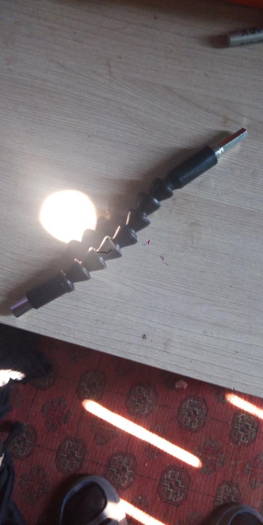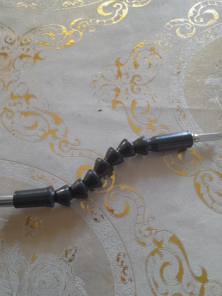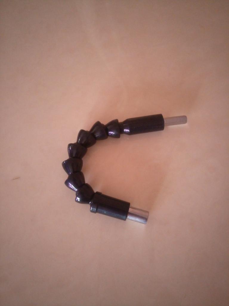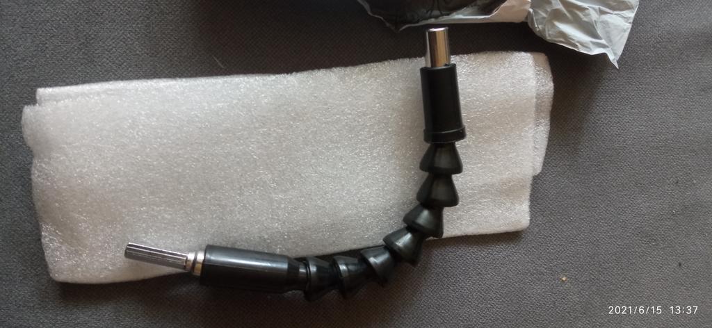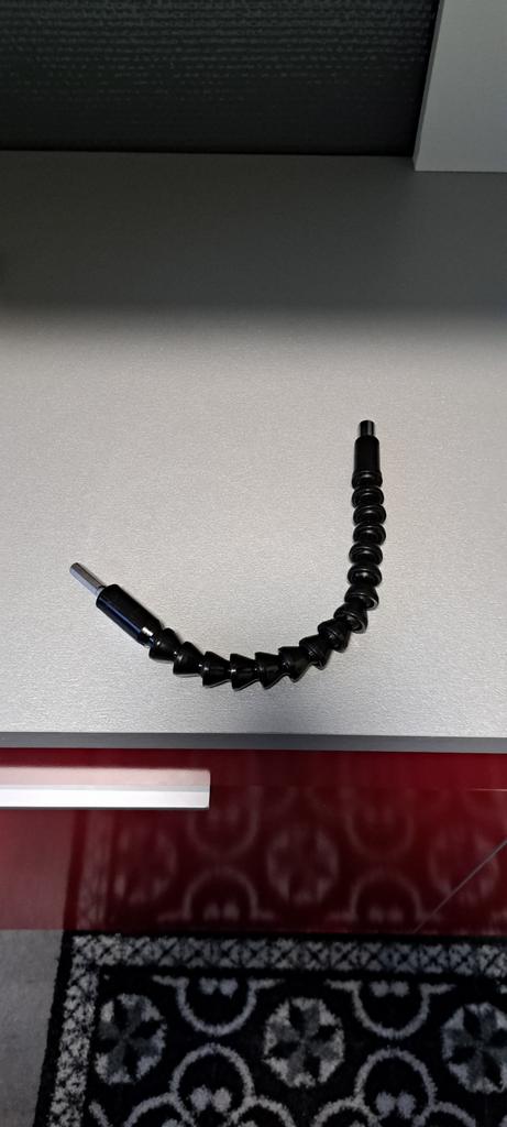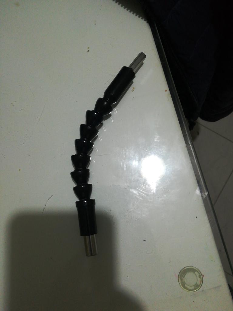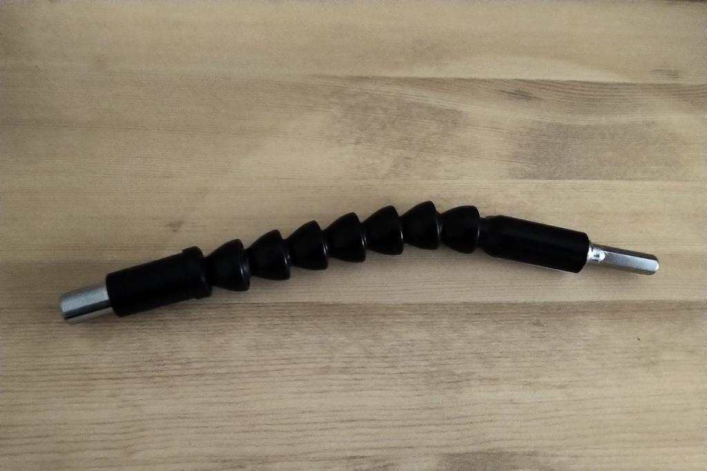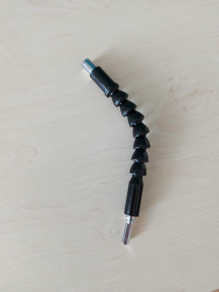Eu realmente gosto da extensão de bit flexível. Você pode chegar a lugares onde a chave de fenda sem fio não pode alcançar. A descrição diz que a extensão deve ter 20cm de comprimento é mas apenas 18,5 cm de comprimento. Mas isso não me incomoda.