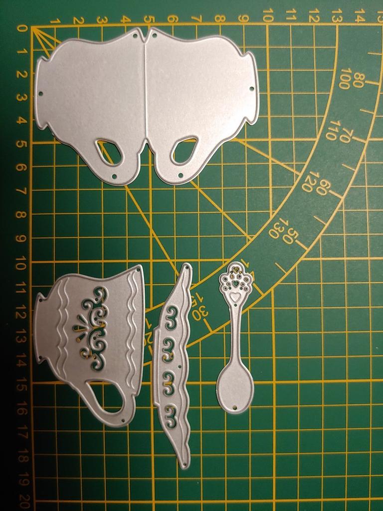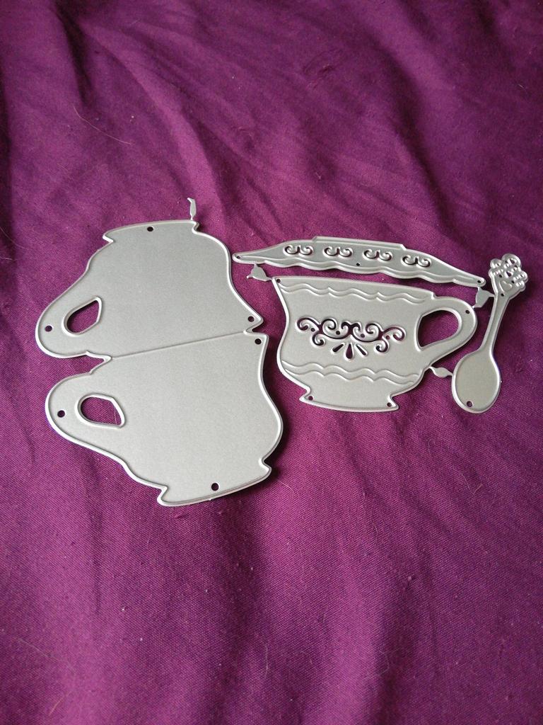 Copo de chá vintage colher corte de metal dados diy scrapbook cartões de papel álbum estêncil