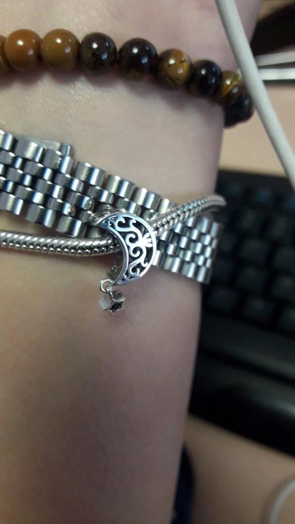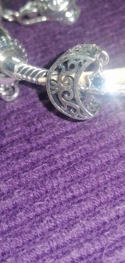 Pingente simplesmente parece fofo. Deve ser prata 925, não encontrei a marca registrada. Mas vou ver se desbota com o uso. Gosto muito do crescente.