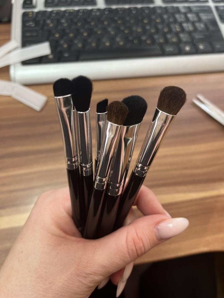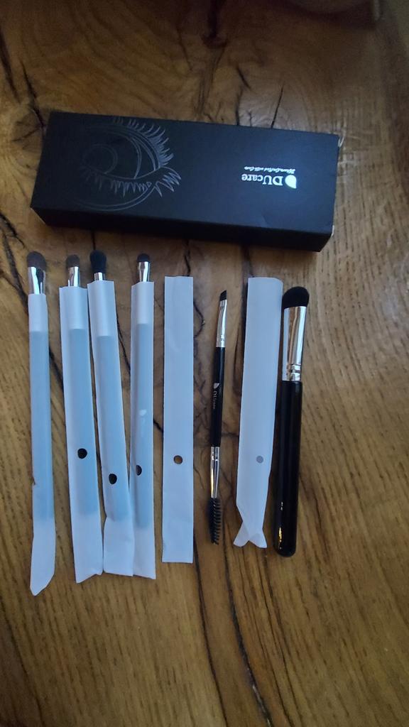 Os pincéis de maquiagem dos olhos são realmente de qualidade e bons. Eu não tentei, mas tenho certeza que eles fazem o trabalho bem. 2 pincéis são feitos de cabelo natural, pareciam do mesmo tamanho para mim.