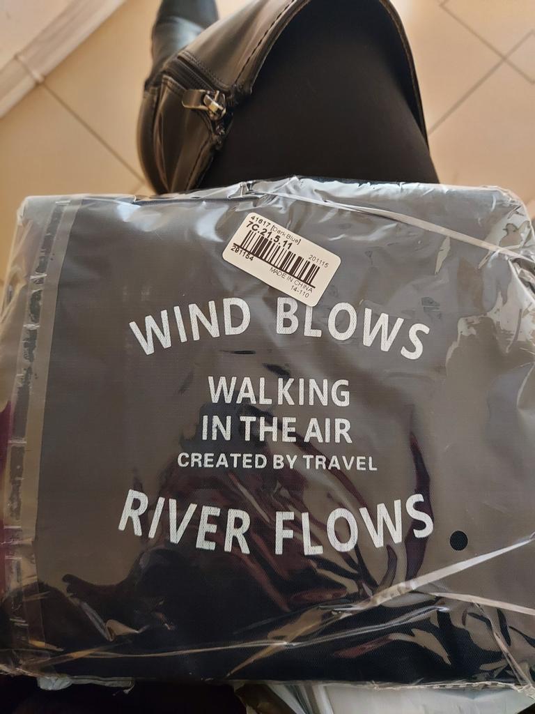 A bolsa cabe em um bolso do tamanho de uma carteira e se expande muito bem. Apenas lutando para colocá-lo de volta no pacote. Isso é ideal para viagens, pois você pode levá-lo com você e não adiciona peso ao que você carrega - tamanho da bagagem de mão.