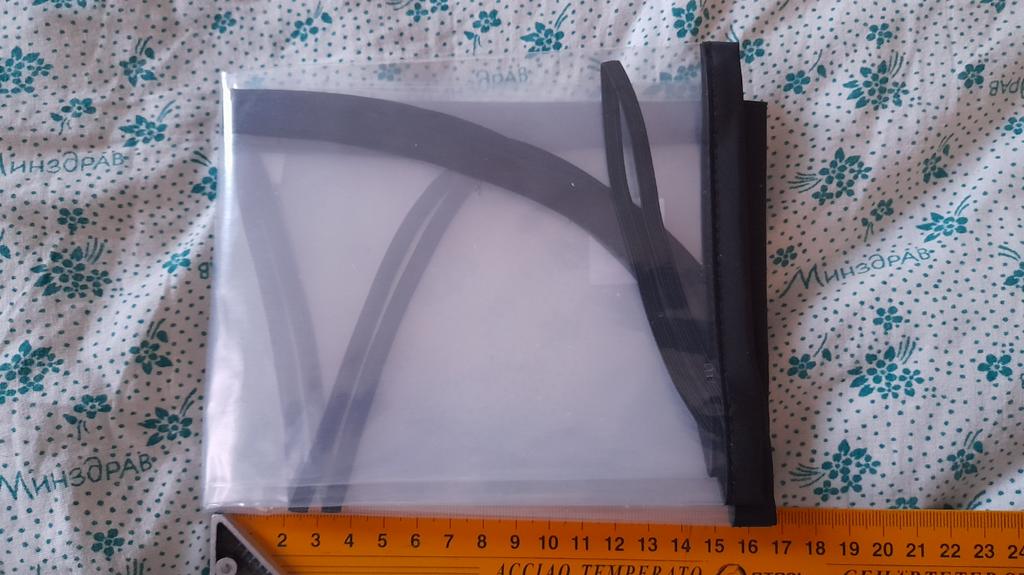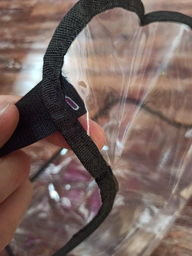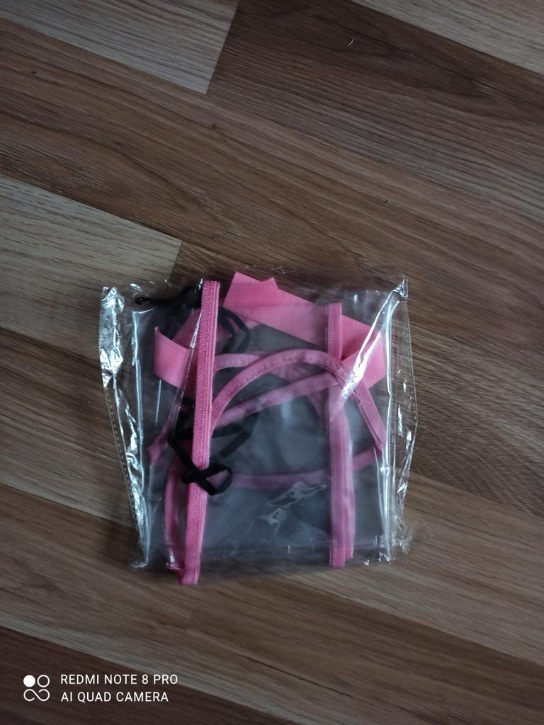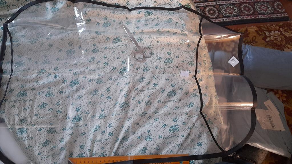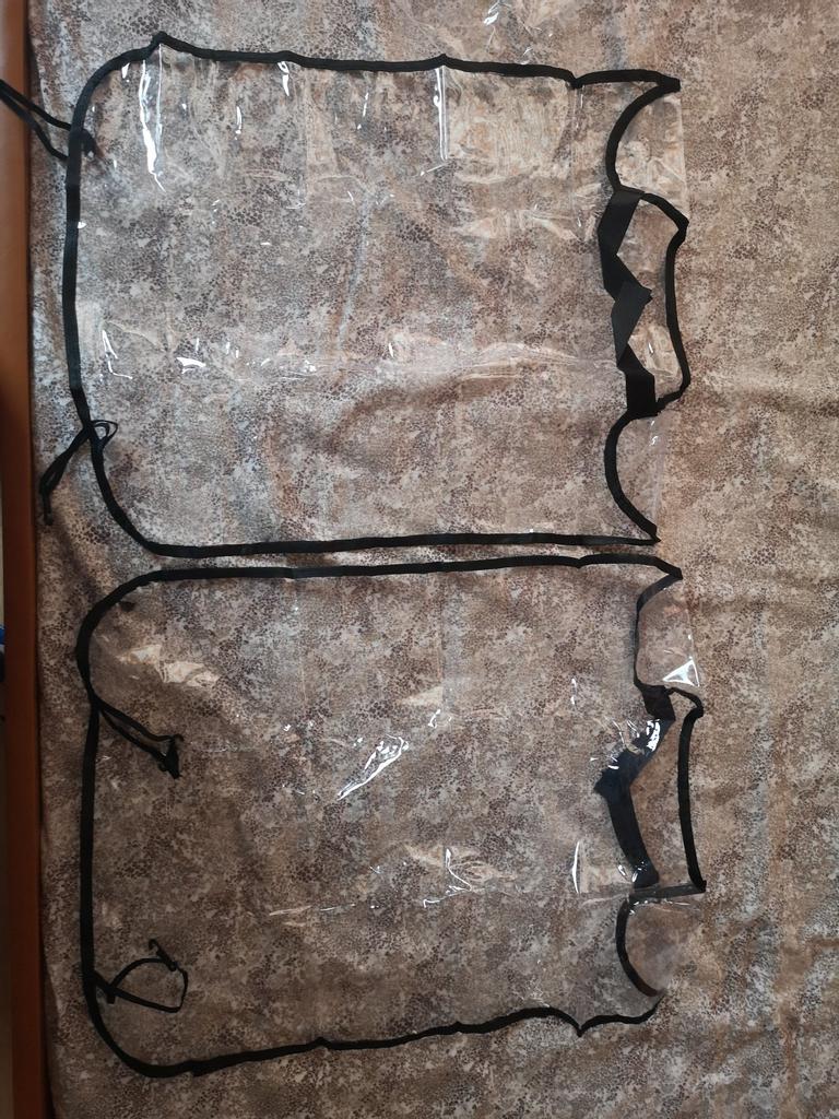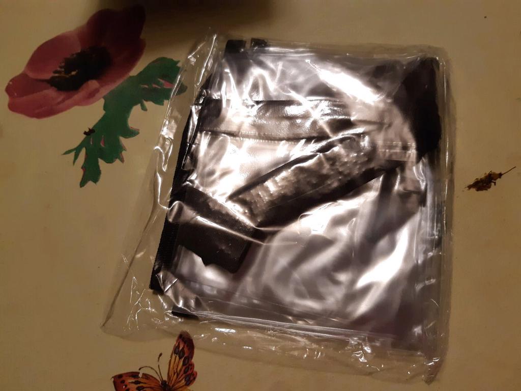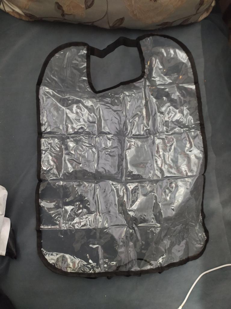 Um saco plástico comum, com fechos, o material lembra uma capa de chuva de carrinho. Há um cheiro, não crítico, faz o seu trabalho.