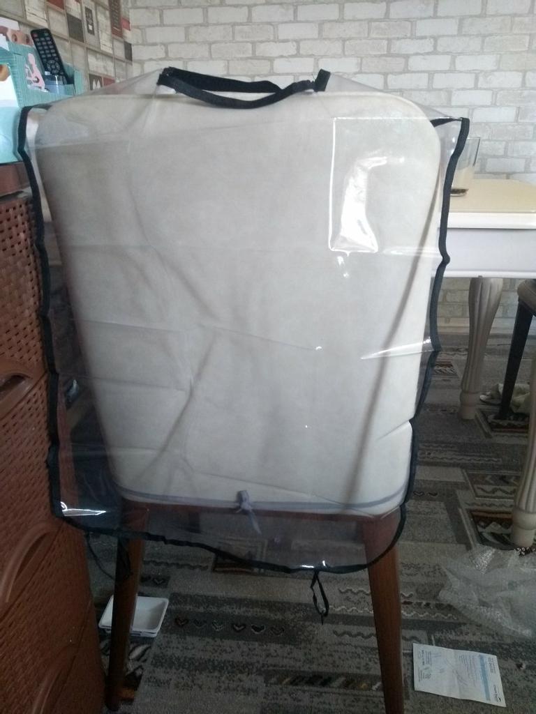 O cheiro é apenas estanho (((você precisa ventilar a varanda por uma semana ... Tamanho 62 por 44 cm, na minha opinião a capa é muito pequena, mas tem que lidar com sua função ...