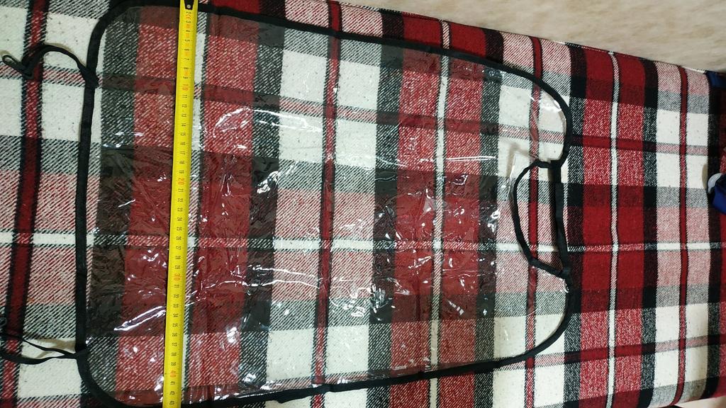 Capa na parte de trás de um assento de carro. Comprei uma cadeira para que a criança não se sujasse com os sapatos. Tudo está inteiro, o oleado é macio, fácil de limpar. Na parte superior há uma fita adesiva, com a qual é fixada na parte superior do assento, entre a cadeira e o travesseiro. Observe que se as capas forem sólidas nas cadeiras, não fixe a parte superior, pois a fita de velcro é curta. Em geral, eu recomendo, uma coisa conveniente.