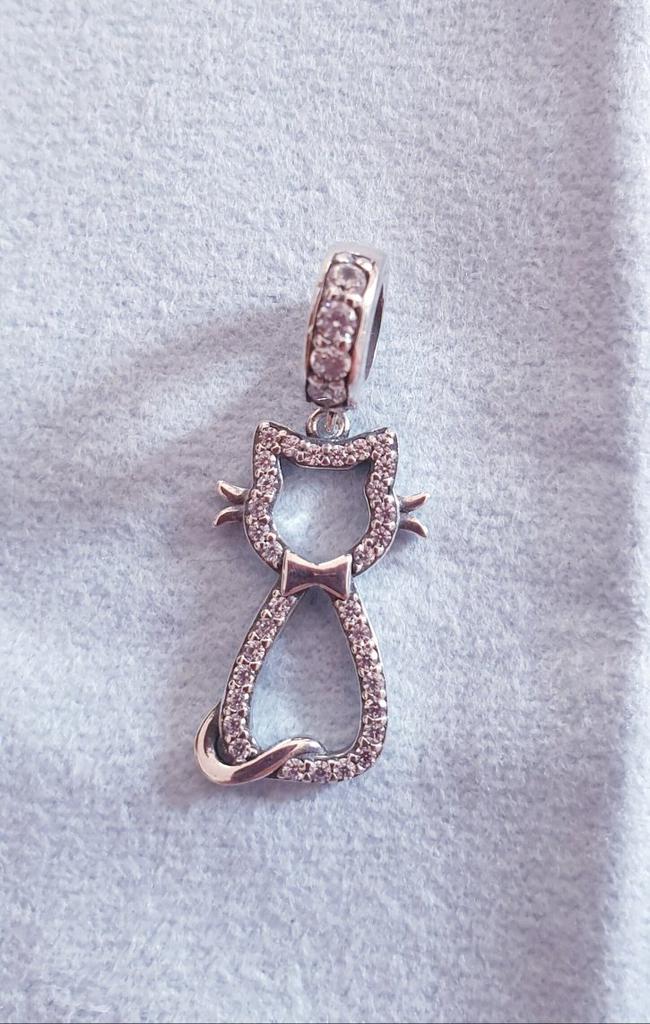 Pingente BAMOER Cat Kitty em prata esterlina 925 transparente CZ Watting amuletos para animais de estimação