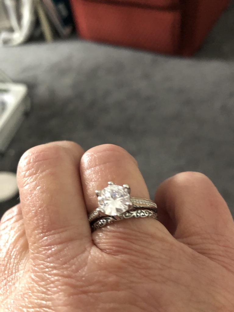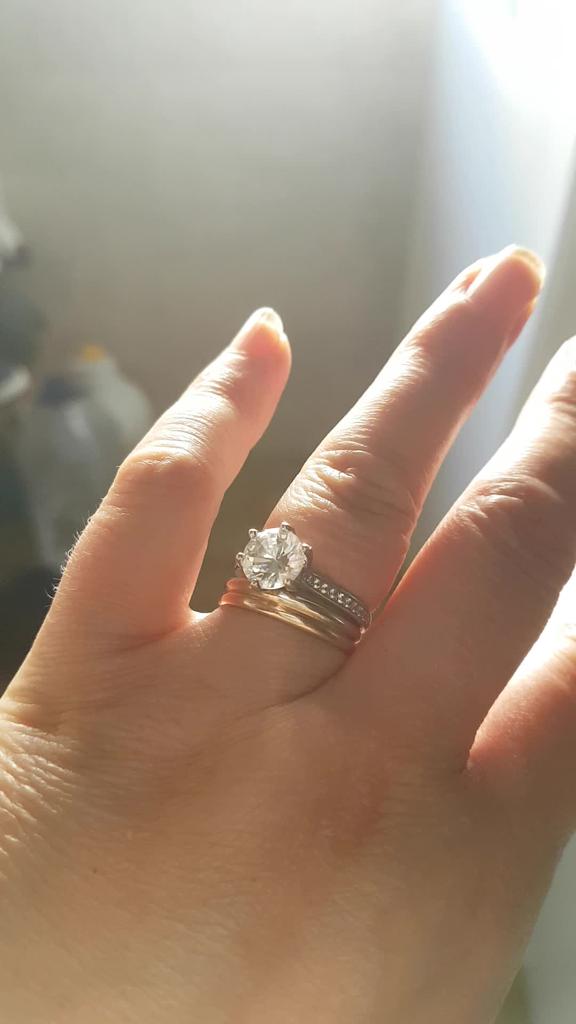 Parece um anel de noivado. Não descolora.
