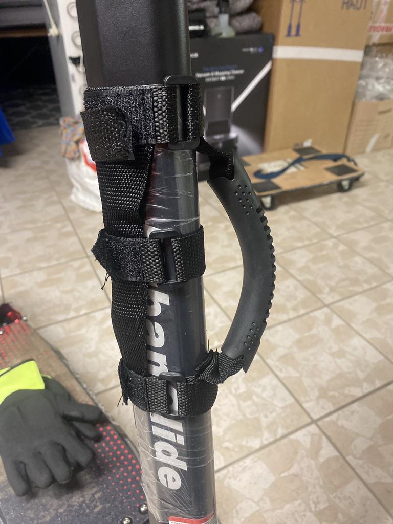A ideia é ótima, mas a qualidade não é tão boa e durou apenas 2 semanas. Acho que esta alça de transporte foi projetada mais para scooters/scooters pequenas e leves que têm mais potência e as costuras são simplesmente muito fracas