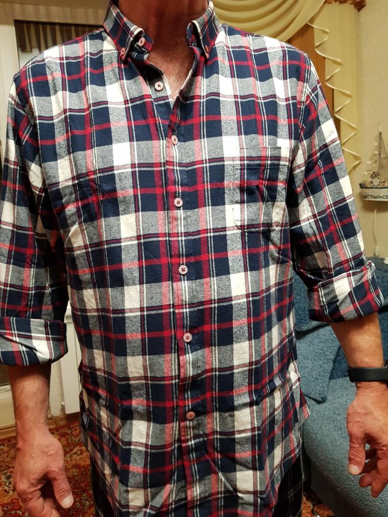 Camisa de boa qualidade em algodão grosso, tamanho um pouco apertado, mas um tamanho acima teria ficado muito grande, eu acho. A cor quadriculada azul e branca é muito boa. Já lavei 2 vezes, e está ok. Ainda ok depois de várias lavagens As mangas são um pouco curtas, então comprarei XXG na próxima vez.. Estou pensando em comprar uma segunda, mas estou esperando um desconto de 20 ou 30% na roda 😀.