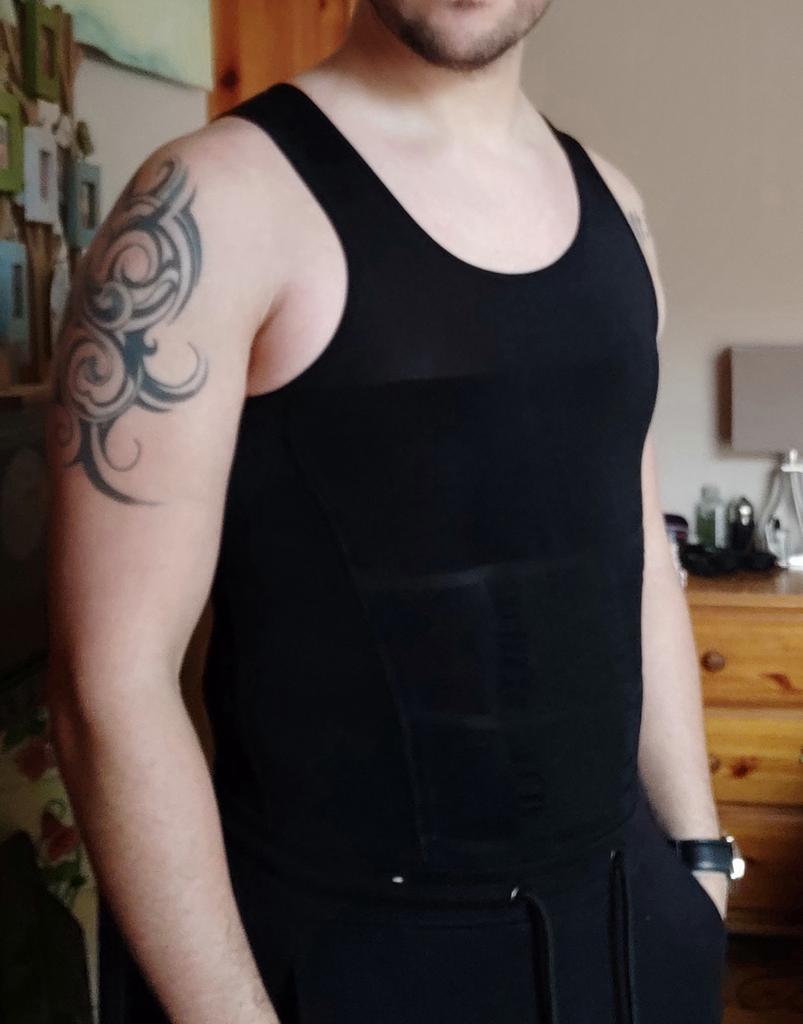 Esta camisa modeladora se encaixa muito bem e retoca minha barriga e rola sob minhas roupas. Eu deliberadamente escolhi o tamanho menor (XL também poderia caber), porque com o aumento das temperaturas, mais esportes são feitos novamente! O tecido é muito elástico e confortável e de alta qualidade, mesmo quando usado. Quem pensa de forma realista aqui, vê isso como uma pequena ajuda de inverno e NÃO espera milagres ficará muito satisfeito com a compra deste produto!