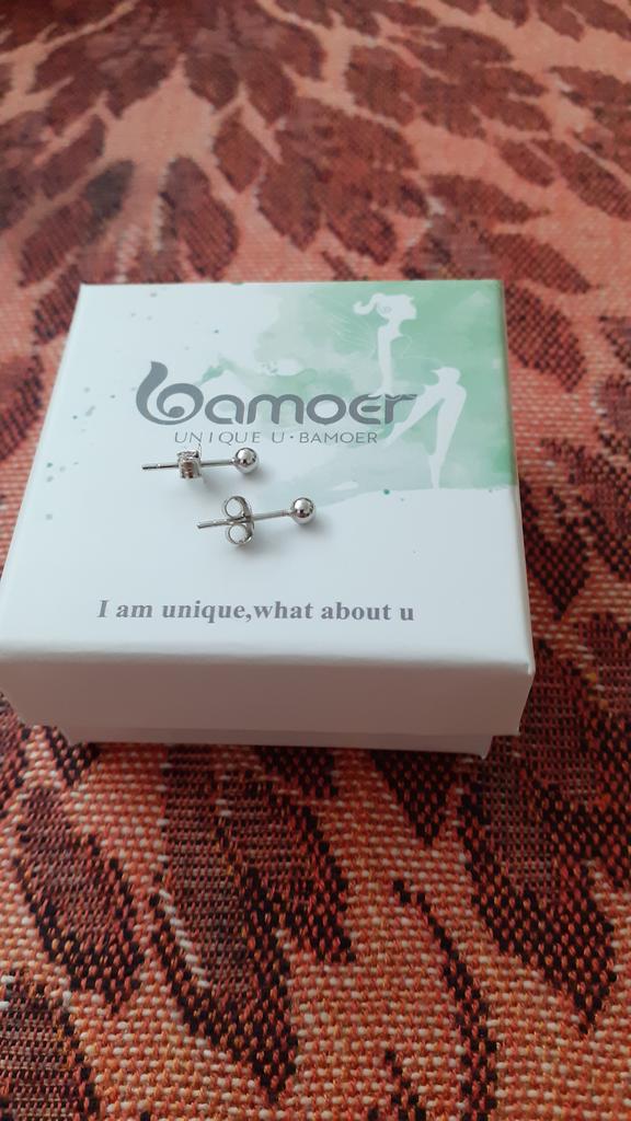 Brincos de prata esterlina 925 real bamoer, brincos de bola de prata para meninas, joias preciosas, presente para mulheres