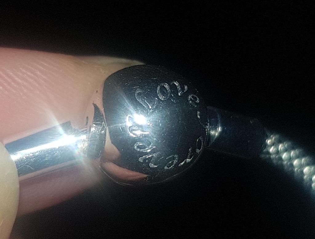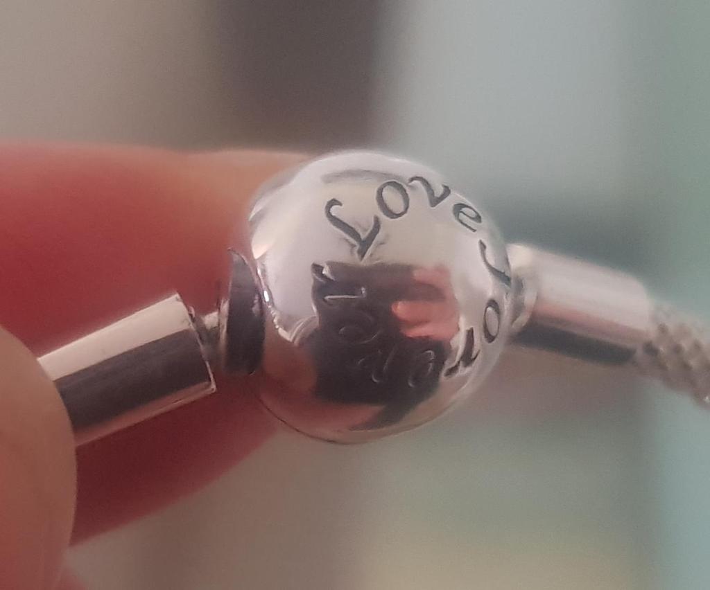 Uma linda pulseira, completa com a letra A. Bem embalada, com acabamento prateado estampado dentro do fecho. Ganhei um presente de muito sucesso. Eu recomendo os bens e o vendedor, absolutamente