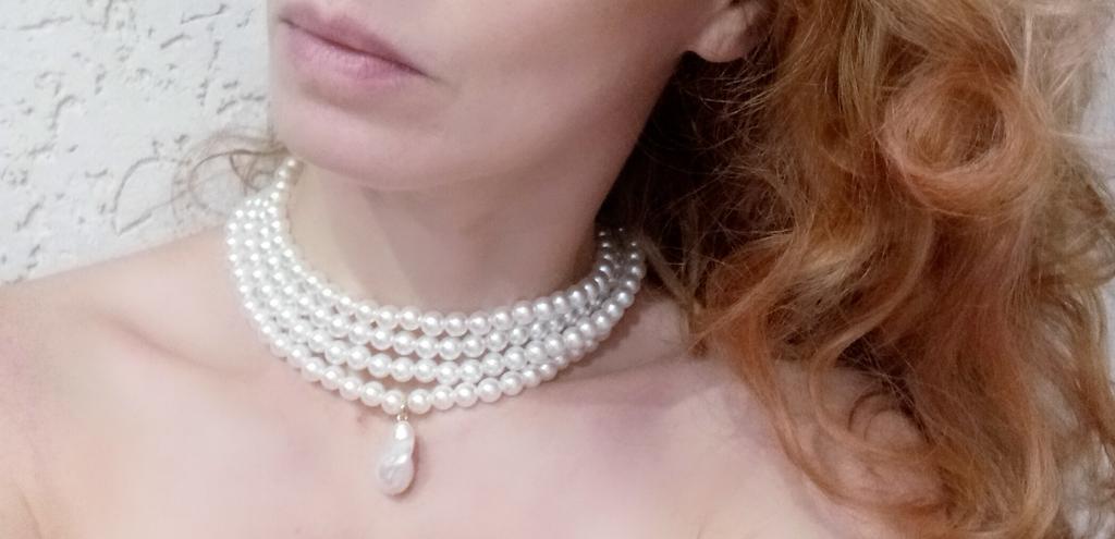 Lindo colar com pérolas barrocas. Parece ótimo. Ótimo para comemorações e feriados. Obrigado.