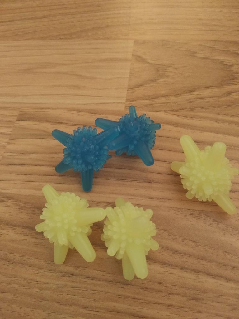 Cinco pequenos ouriços fofos. Não são muito duros, na hora da lavagem às vezes ficam entupidos sob o vidro da porta, mas depois, durante a centrifugação, voltam para o tambor. Ainda não consigo descobrir se isso é a coisa certa. Mas a qualidade do acabamento é 5. Acrescento: enrolam-se na lã e nos cabelos da roupa, o que é sem dúvida uma vantagem.