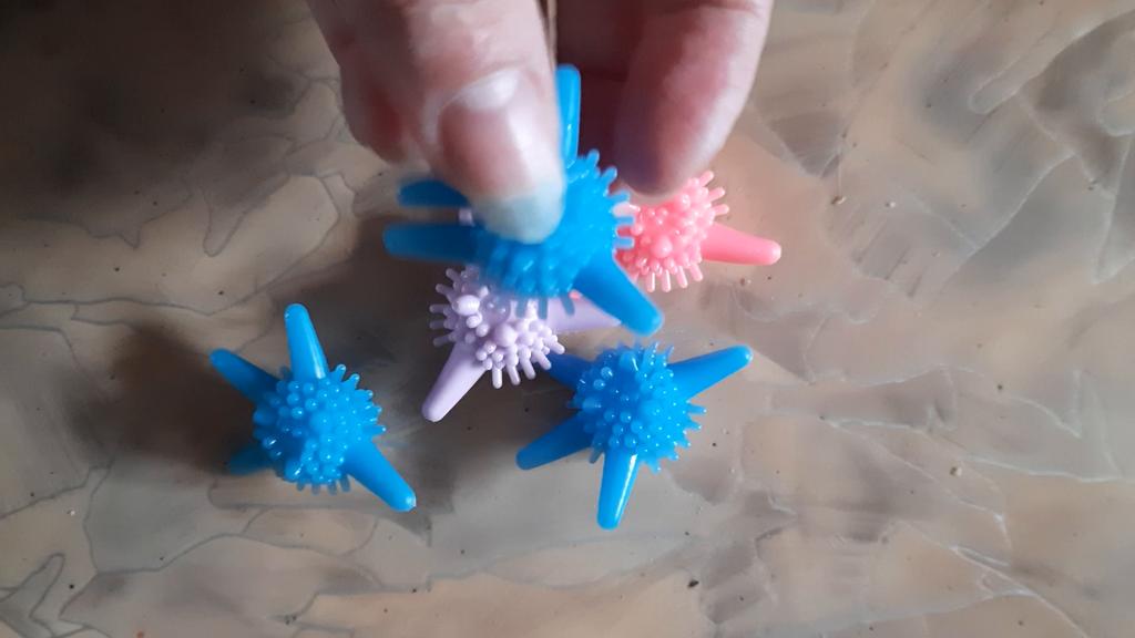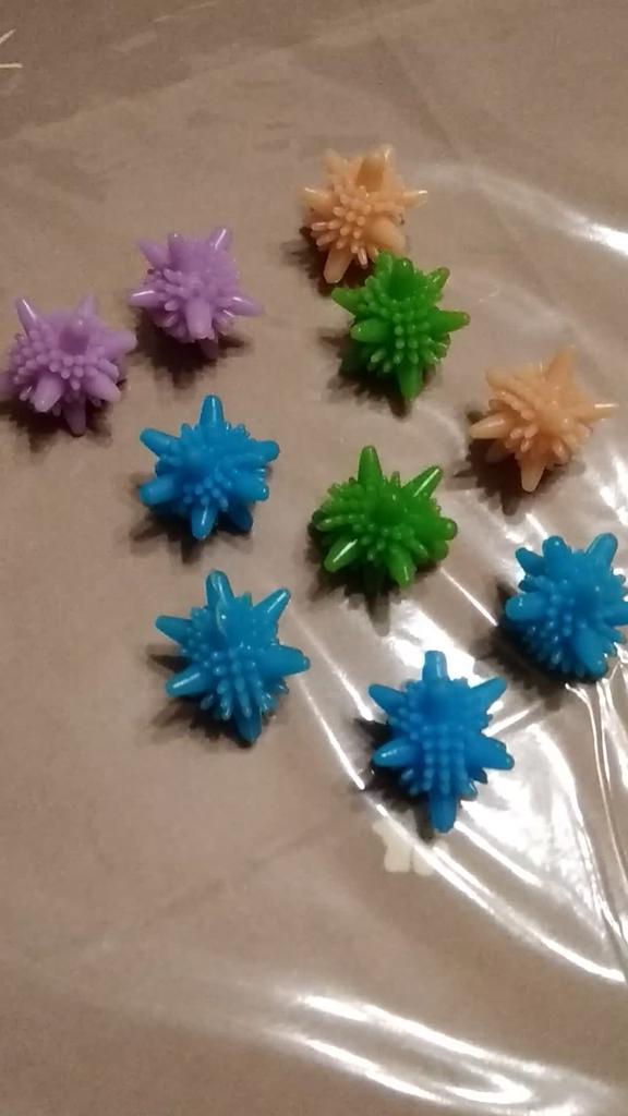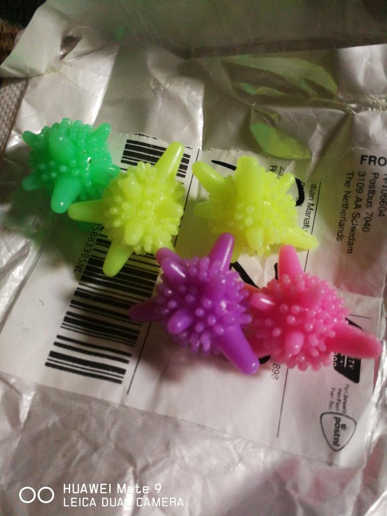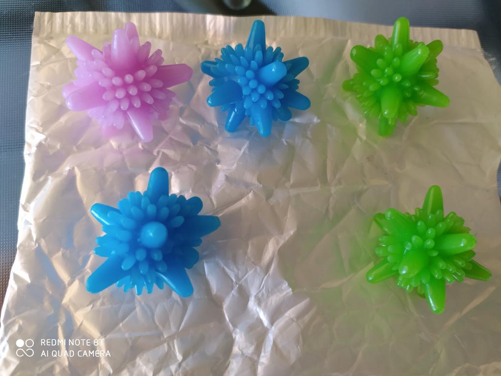 Excelentes auxiliares de lavagem) têm um cheiro quase imperceptível, o que não afeta em nada a fragrância das roupas. Encomendei aqui pela segunda vez, na primeira vez mandaram bolas de tamanho maior, mas com pontas menores, e na segunda vez - o contrário. Mas essas diferenças não afetam a capacidade de bater coisas volumosas (travesseiros, jaquetas, etc.) e tornar as coisas mais macias. As bolas são pequenas e, portanto, não batem tanto nas paredes do tambor. Agradecimentos especiais pela cor lilás, que adoro) Estou satisfeito com a compra e também com o preço (≈ 50 UAH com cupom -10%), e também é minha entrega mais rápida - 20 dias (geralmente 1,5 meses, ou mesmo todos os dois) eu recomendo!)