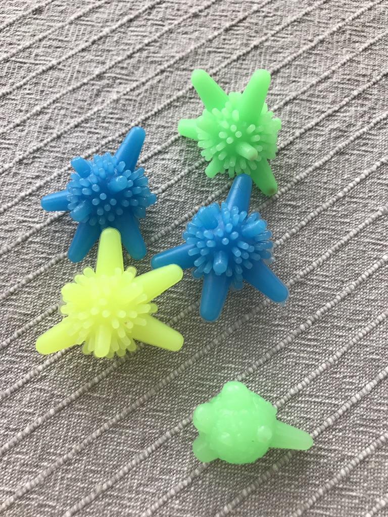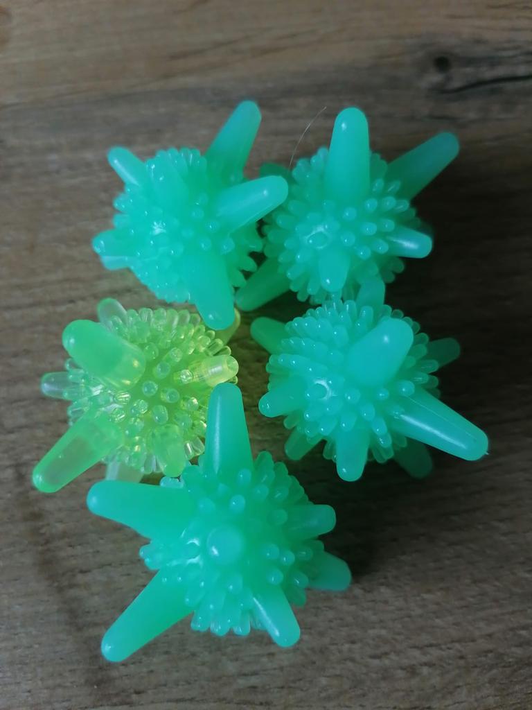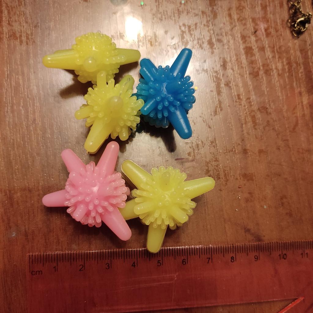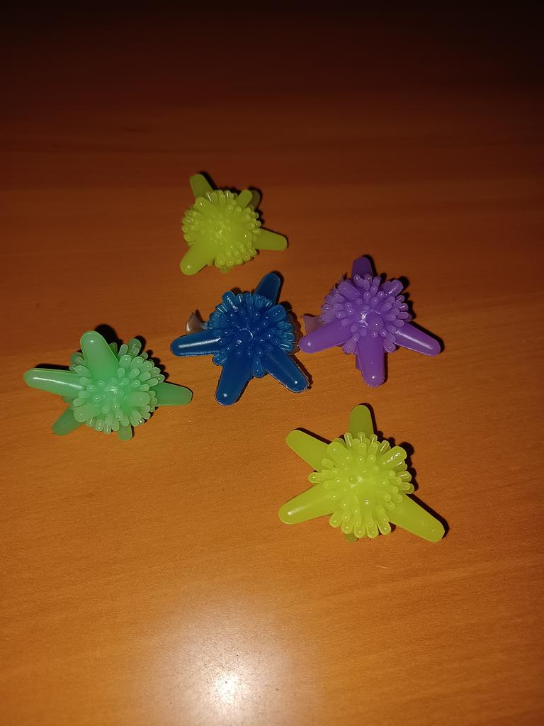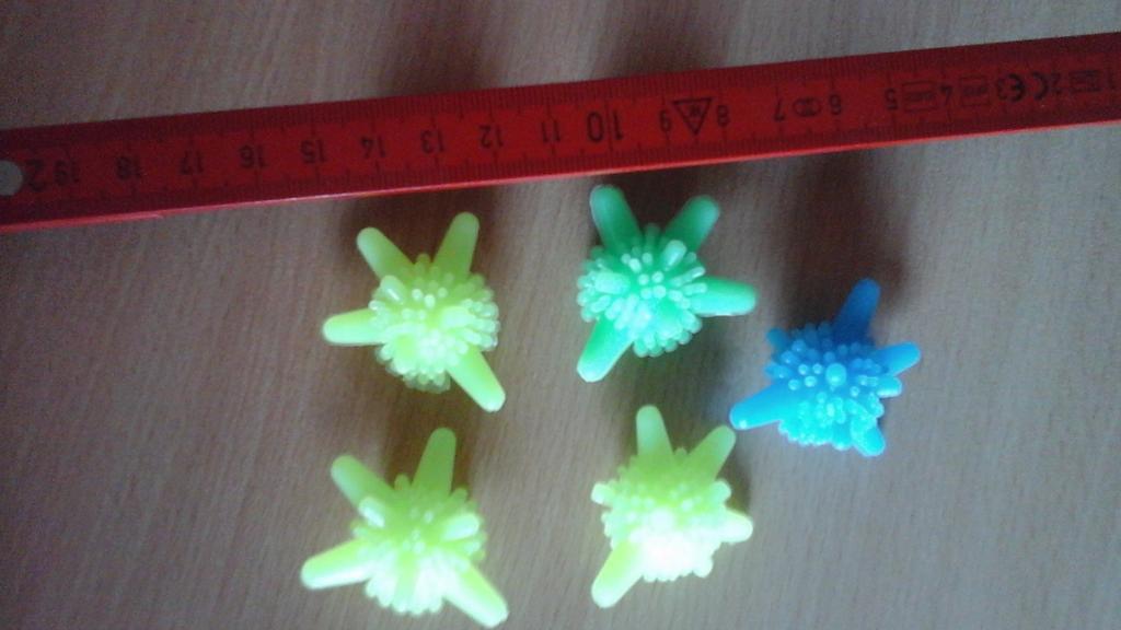 O pacote foi entregue em duas semanas, o sms foi anunciado na chegada. Foi possível acompanhar o movimento da encomenda desde a loja até ao ponto de emissão. Recebeu 5 "ouriços" coloridos que combinam com a descrição. Feito de PVC, mas o material não é sólido, mas lembra mais a borracha. Tem um leve odor. Após o uso, adicionarei um comentário.