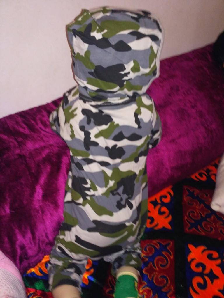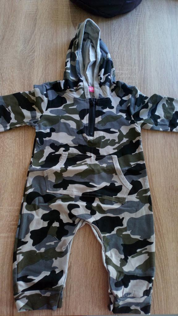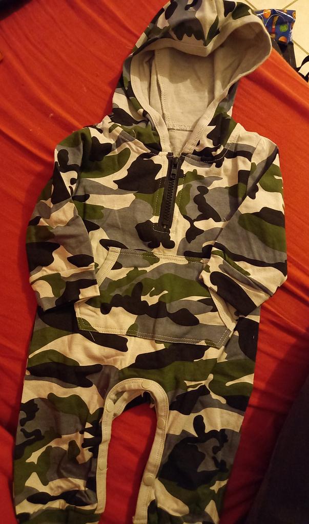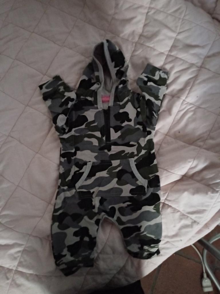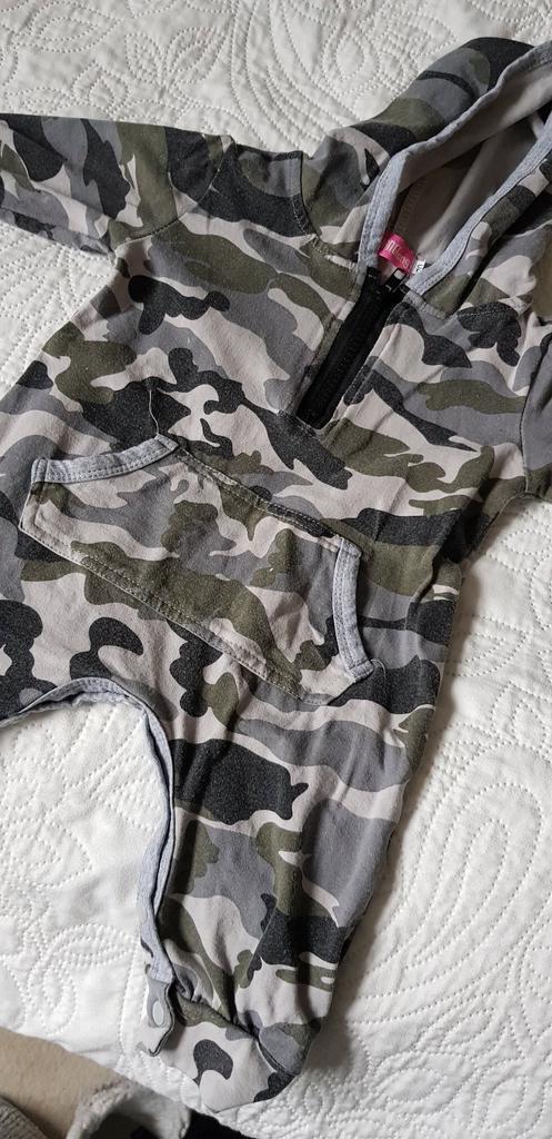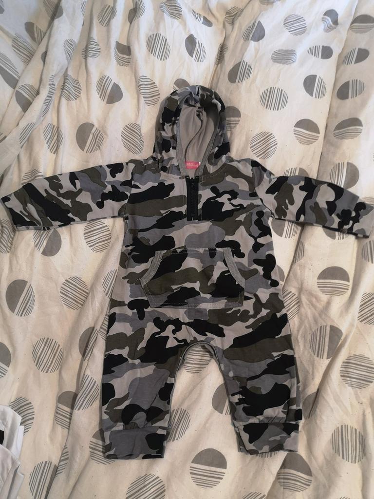 Roupa muito bonita. Bolso pequeno na barriga. Pressões entre as pernas. Acabamentos corretos.