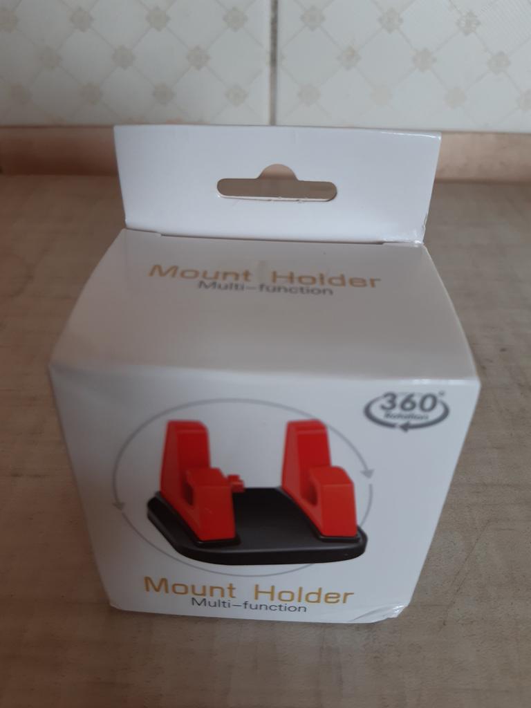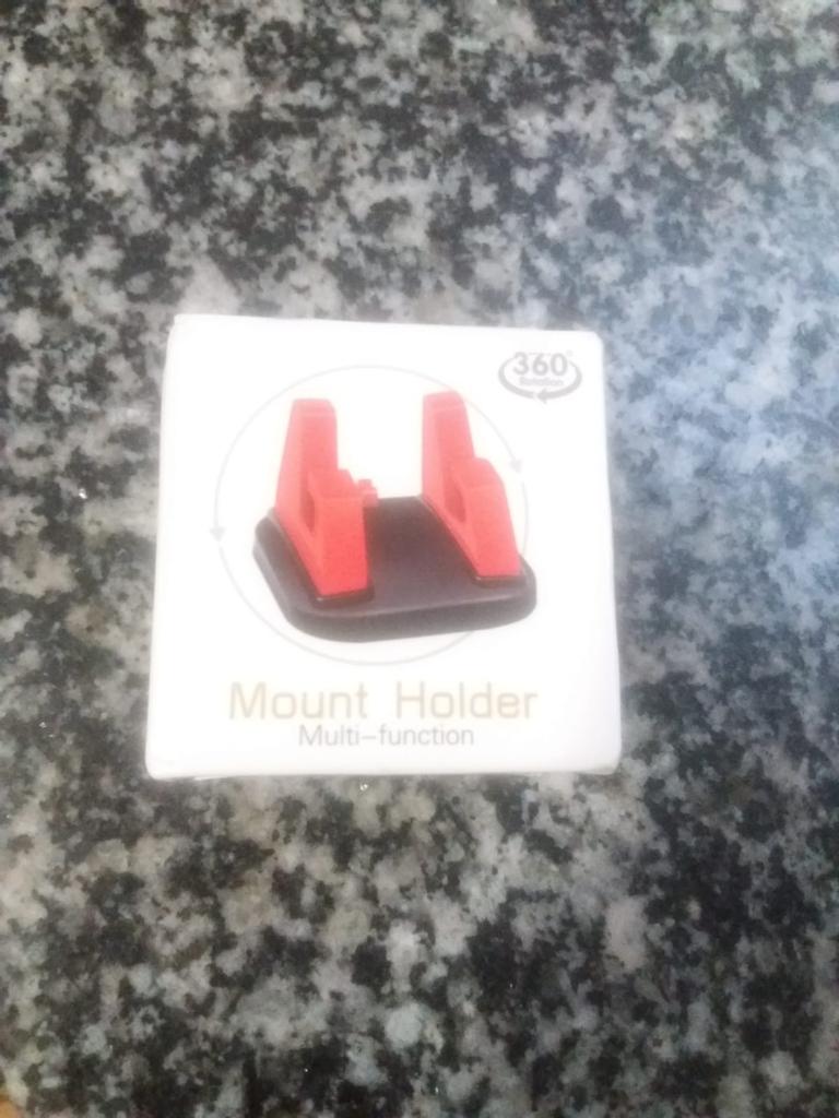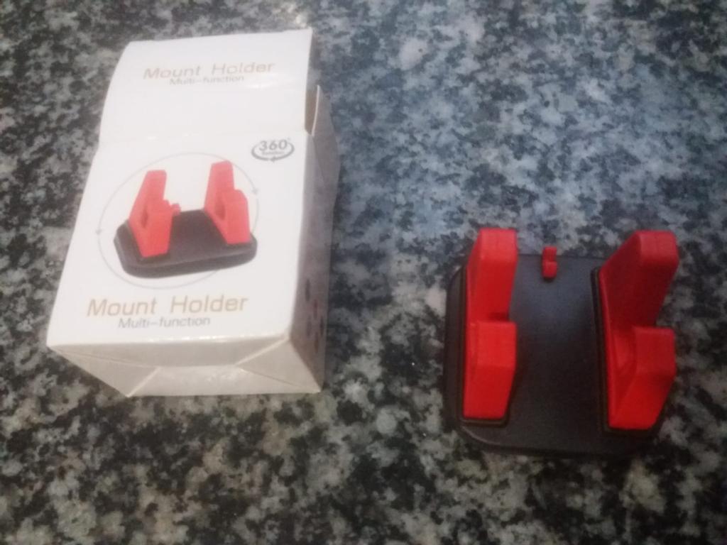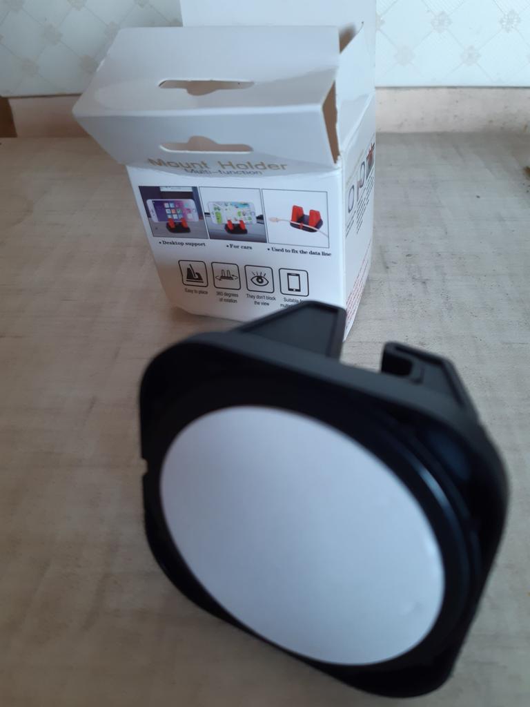 O produto chegou em um mês. O suporte é leve, feito de plástico, projetado para um telefone fino (meu Samsung A6) e só cabe sem case embutido. Na parte inferior existe uma camada adesiva para fixação na superfície, ela gira com um clique
