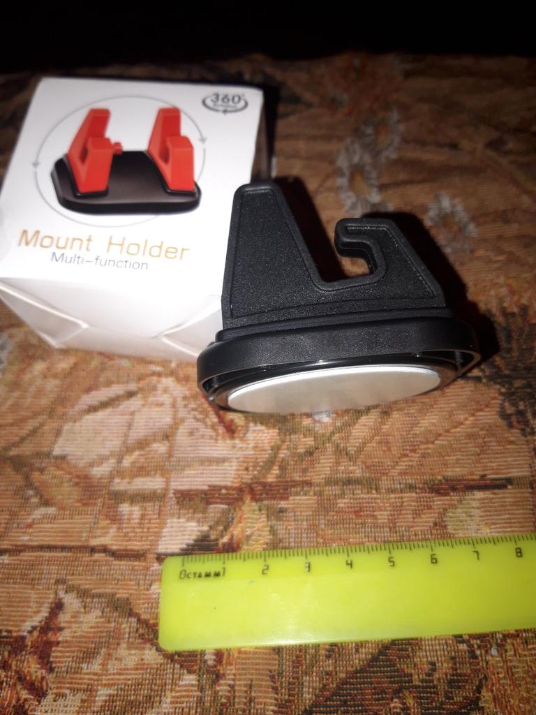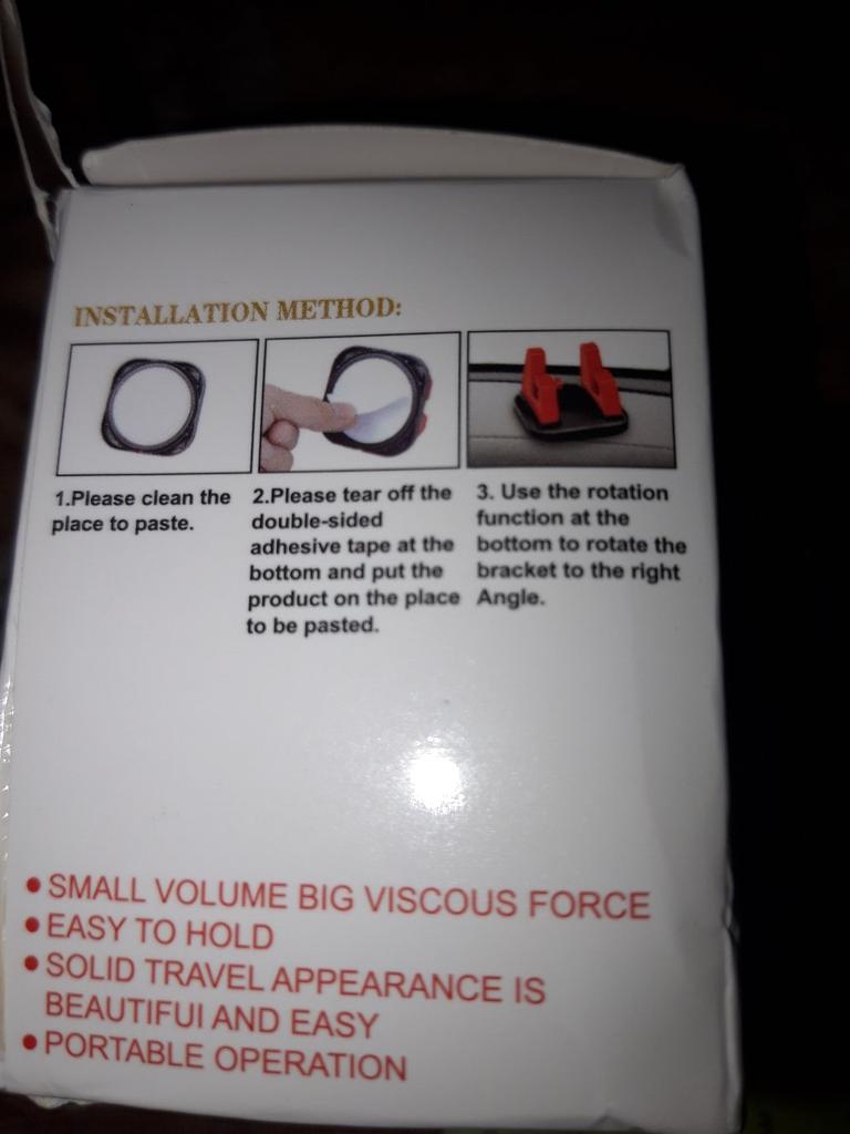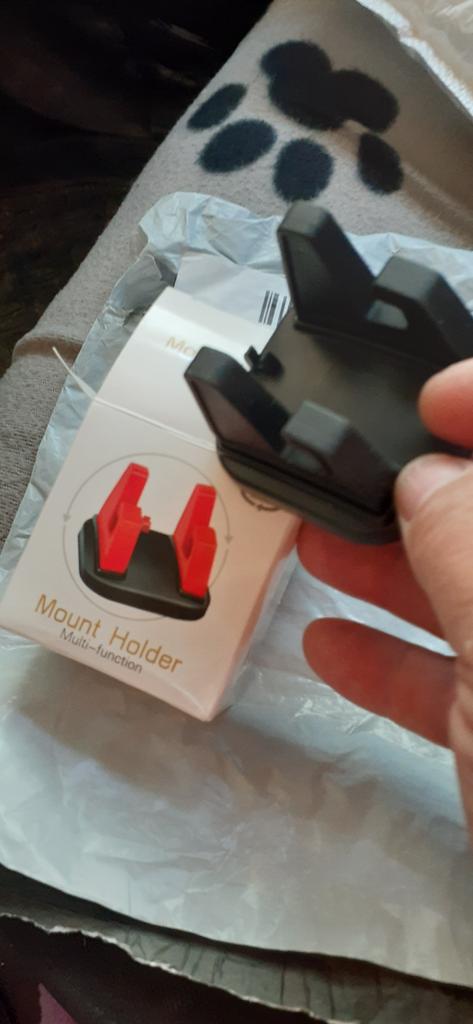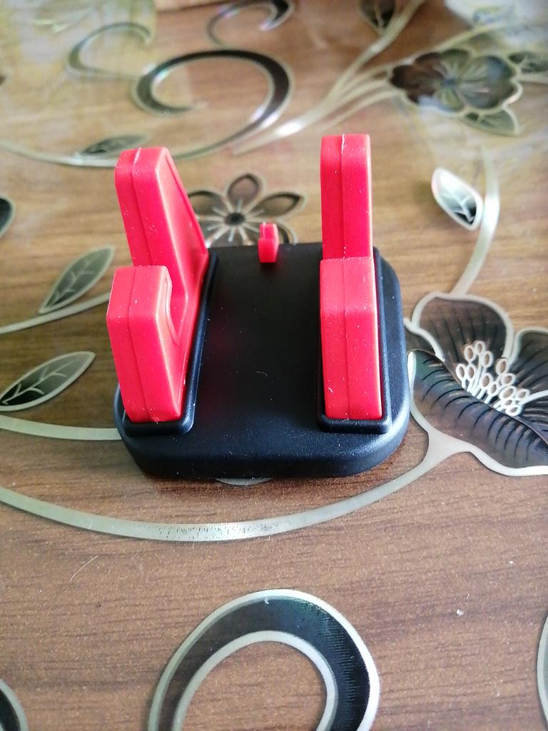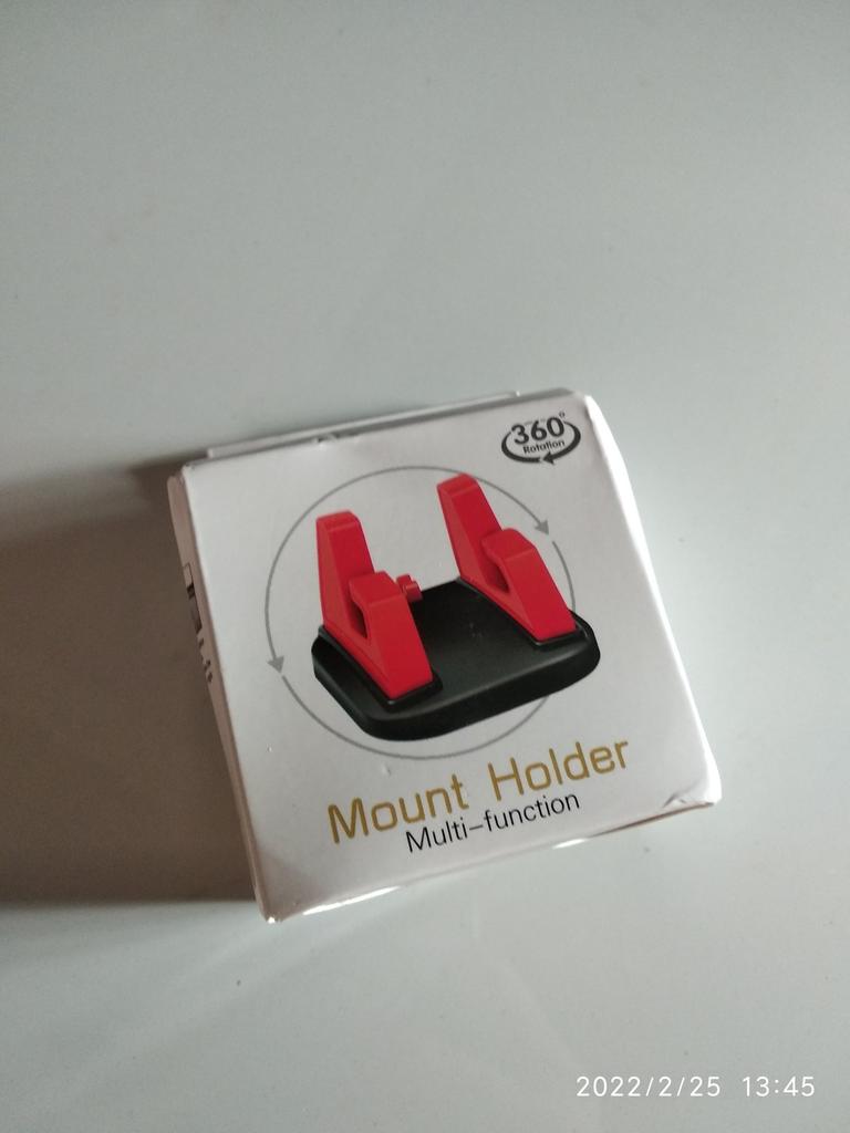 O produto chegou em um mês. O suporte é leve, feito de plástico, projetado para um telefone fino (meu Samsung A6) e só cabe sem case embutido. Na parte inferior existe uma camada adesiva para fixação na superfície, ela gira com um clique