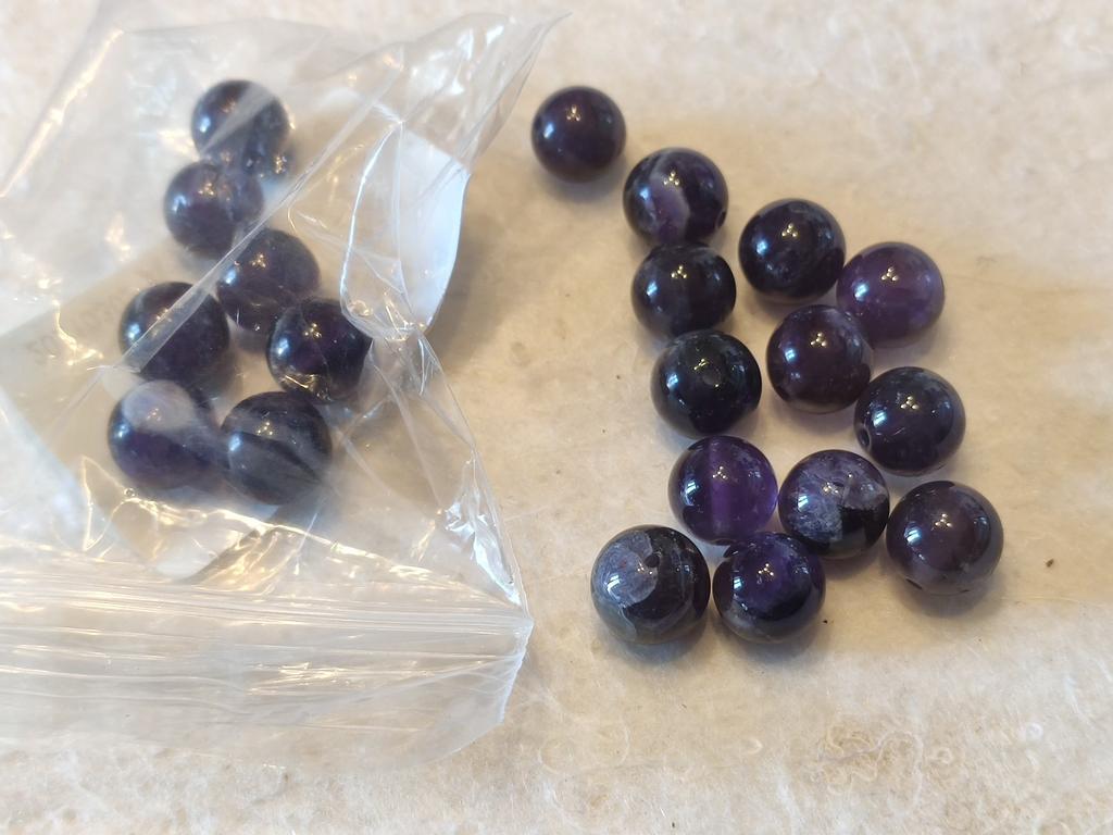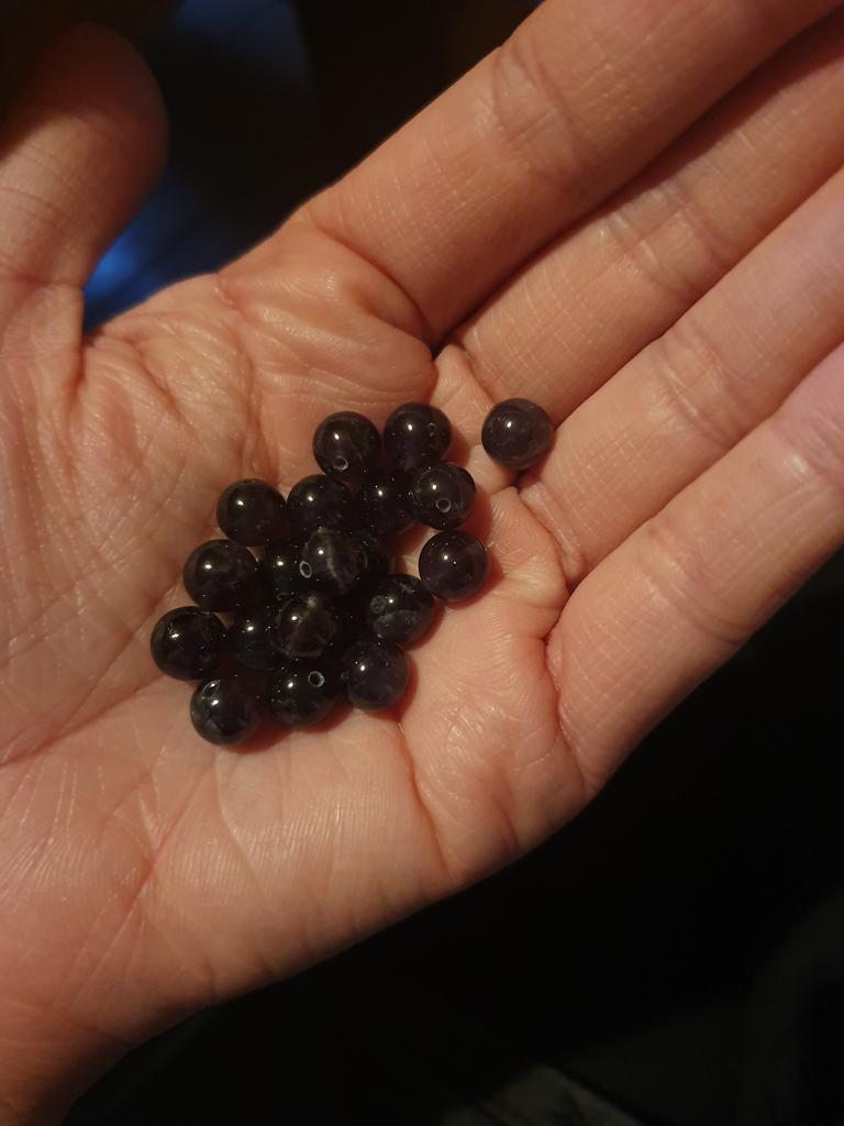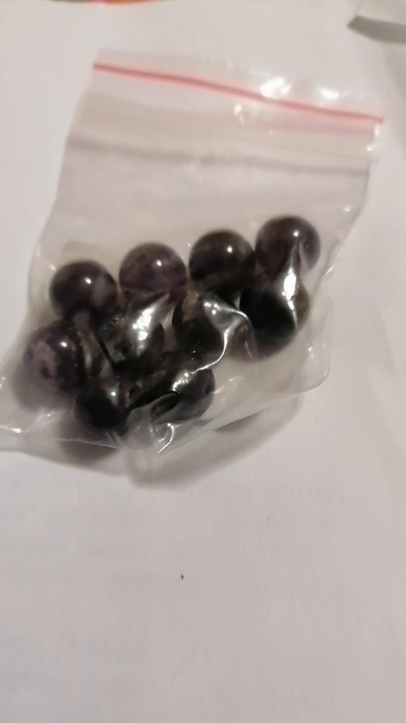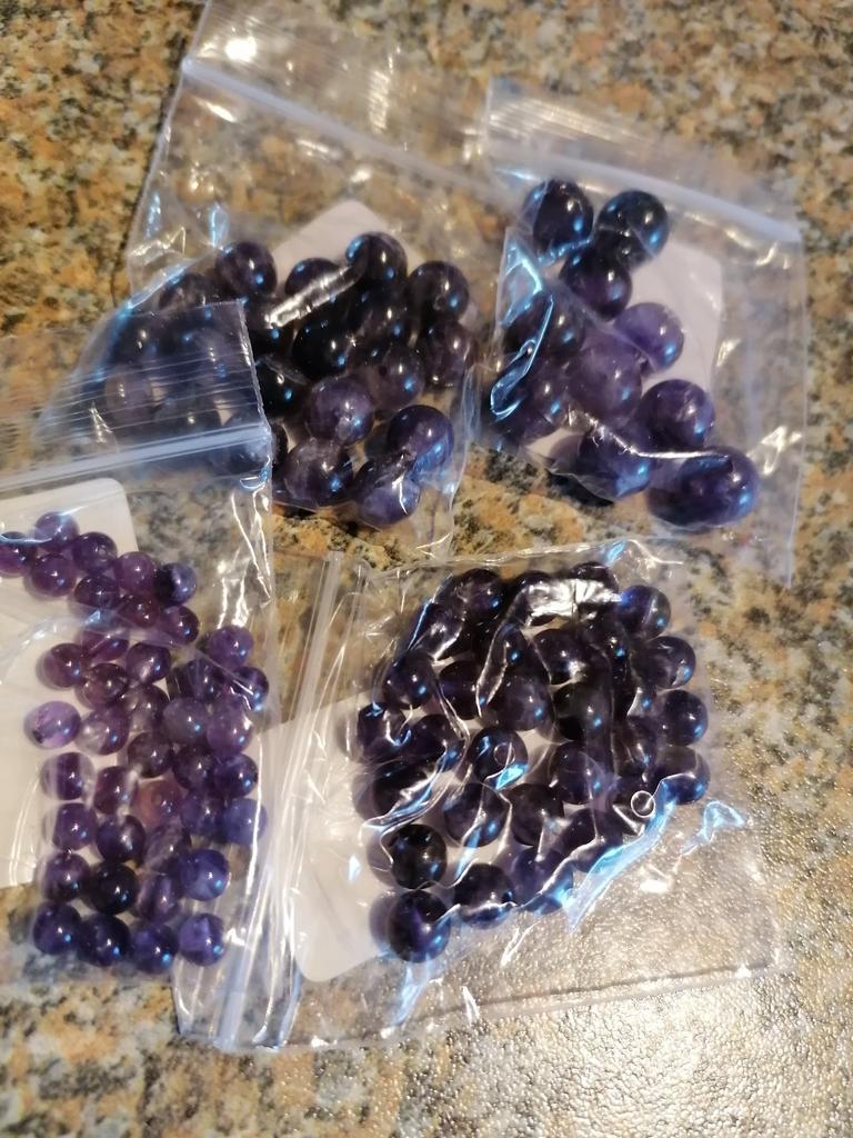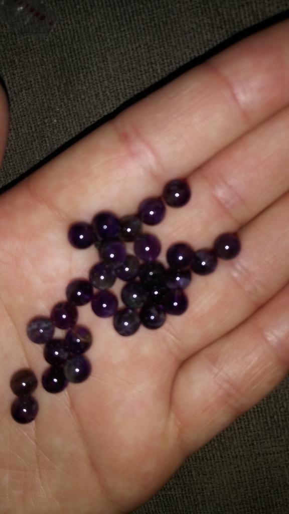As contas de ametista não se parecem com ametistas. Eles são quase pretos ou de cor antracite. Fiquei intrigado por um longo tempo sobre o que deveria ser. Como eu tinha encomendado muito, só consegui descobrir pelo meu pedido que estas deveriam ser as contas de ametista. De jeito nenhum vou encomendar estes novamente.