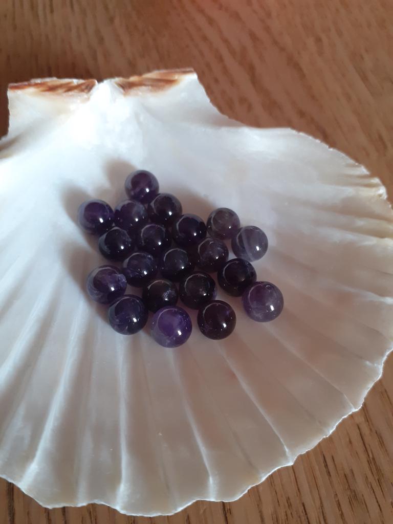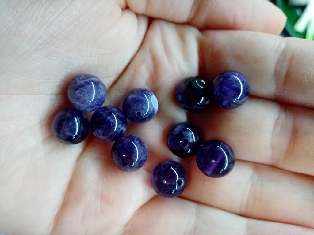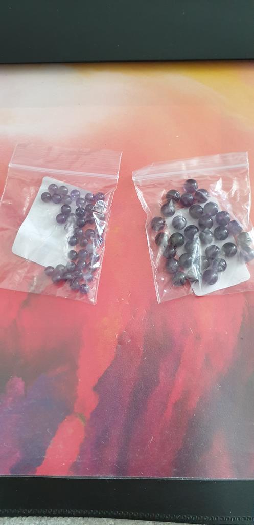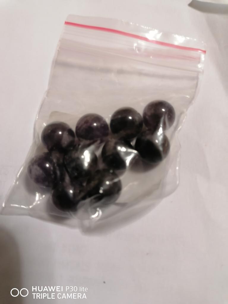 As contas de ametista não se parecem com ametistas. Eles são quase pretos ou de cor antracite. Fiquei intrigado por um longo tempo sobre o que deveria ser. Como eu tinha encomendado muito, só consegui descobrir pelo meu pedido que estas deveriam ser as contas de ametista. De jeito nenhum vou encomendar estes novamente.