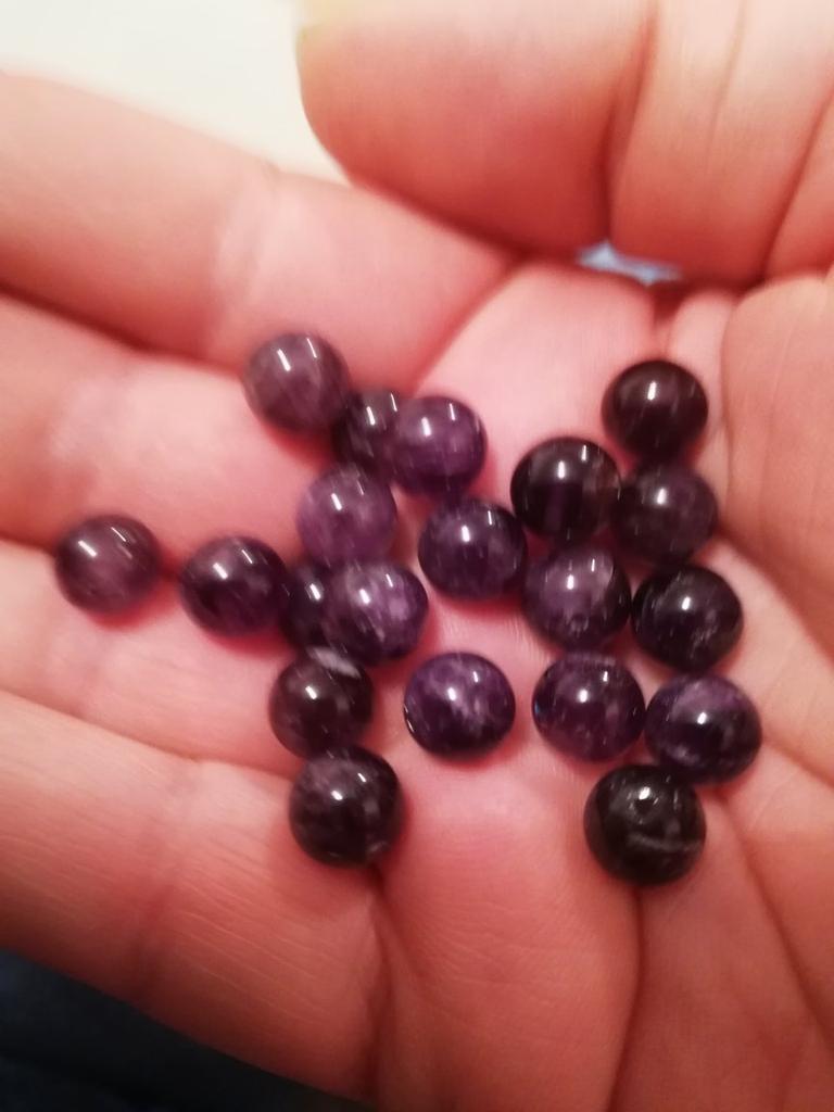 Pedra natural, ametista. Farei contas de rosário muçulmano. Comprei 40 peças, mas preciso de 33. Recomendo comprar!