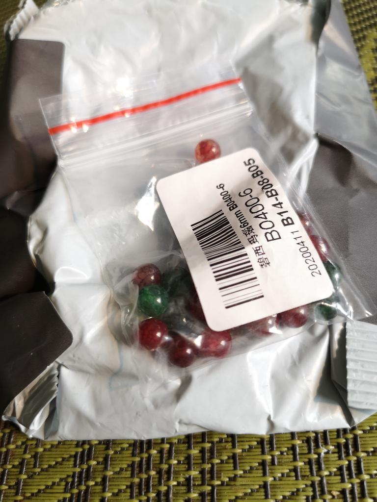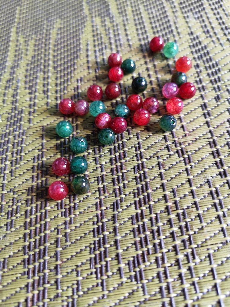 Aproximadamente 30 contas de turmalina vermelha/verde, tamanho 6 mm. Lindo. 😘🦋