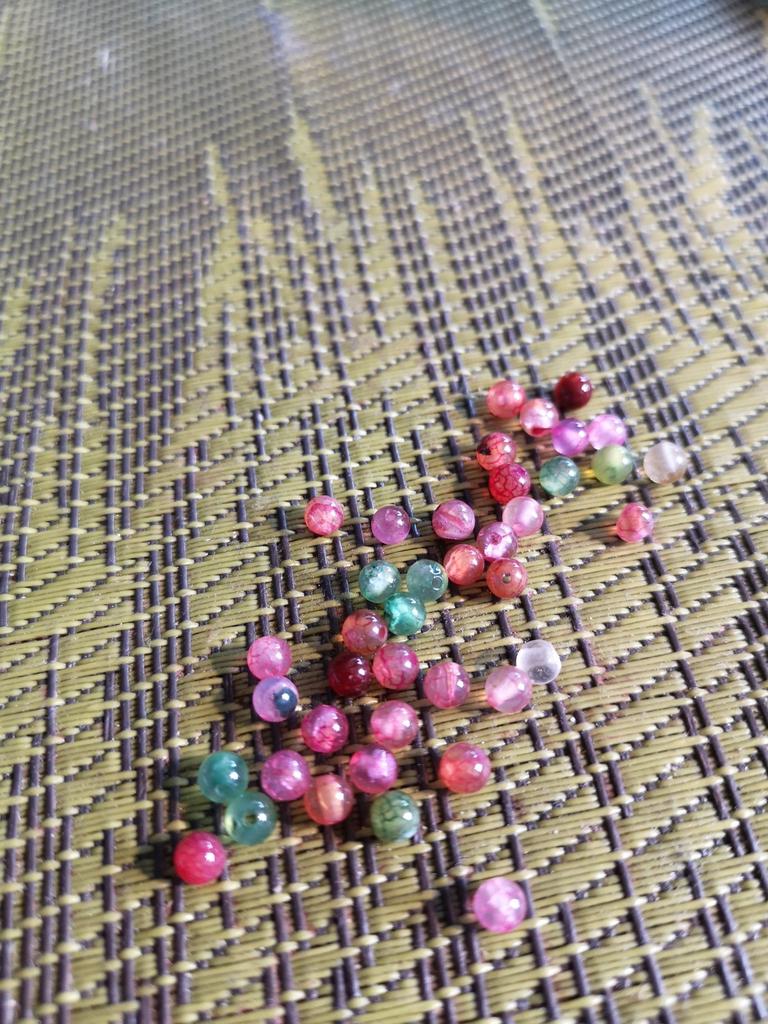 Aproximadamente 40 contas de turmalina vermelha/verde, tamanho 4mm. Você está fantástica. 🥰🦋