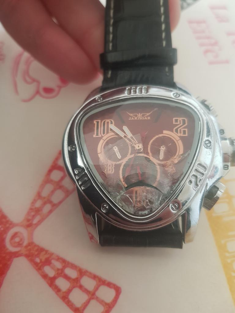 Enojado... o relógio parece bom mas chegou quebrado o mostrador está avariado ódio 🤬🤬🤬