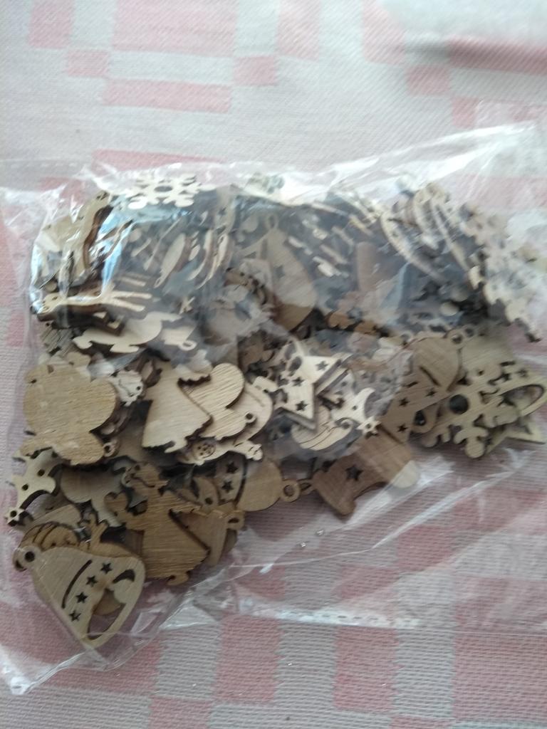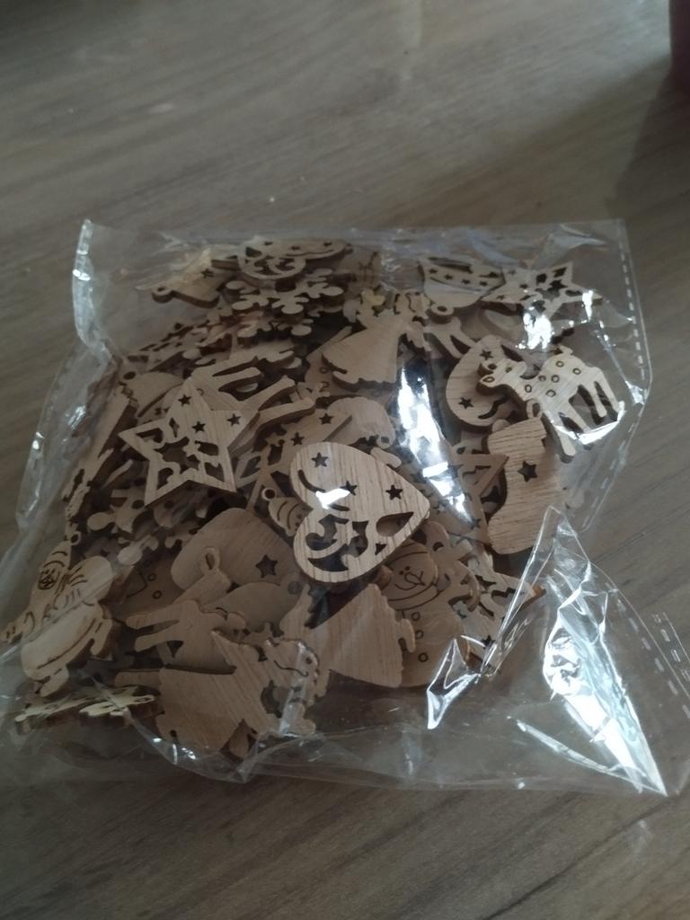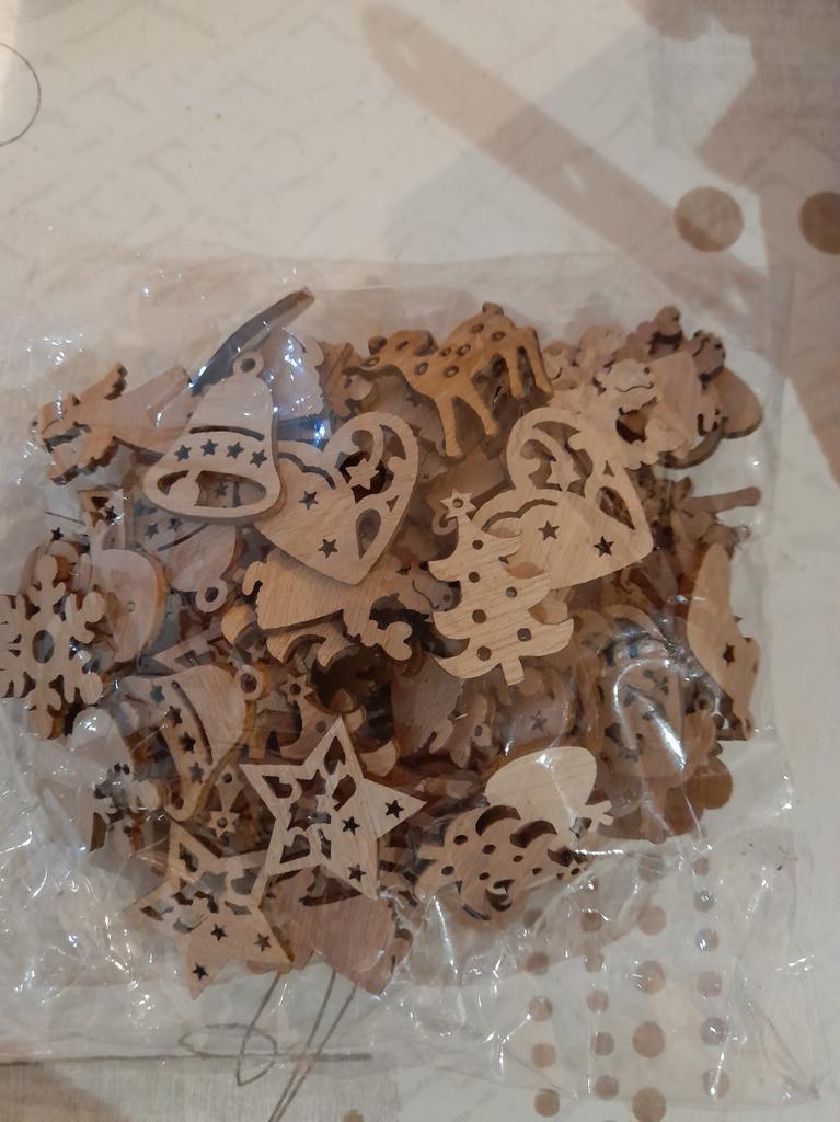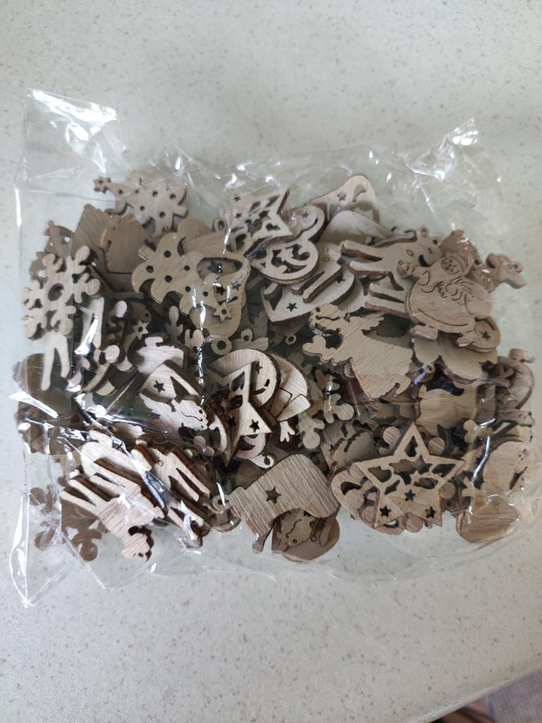 Decoração de Natal de madeira fofa. Madeira real - bem processada e trabalhada de forma limpa - mas muito pequena. Do meu ponto de vista, é principalmente adequado para decorar presentes ou arranjos muito pequenos. Mas preço bom para 100 peças 🎄🎄🎄