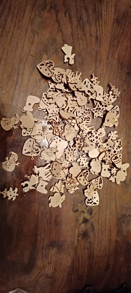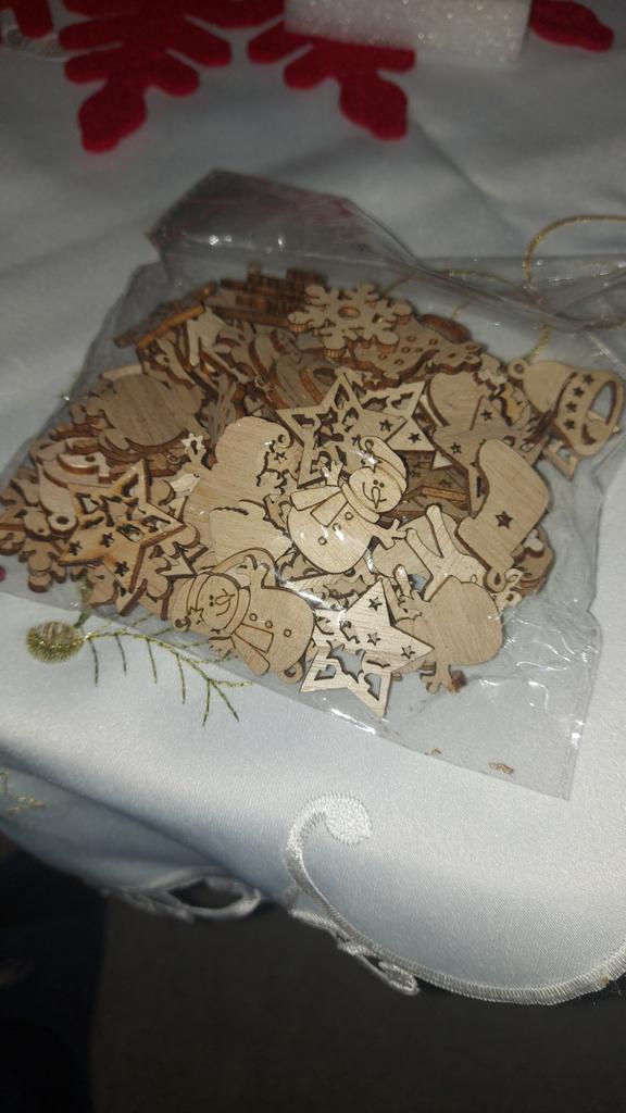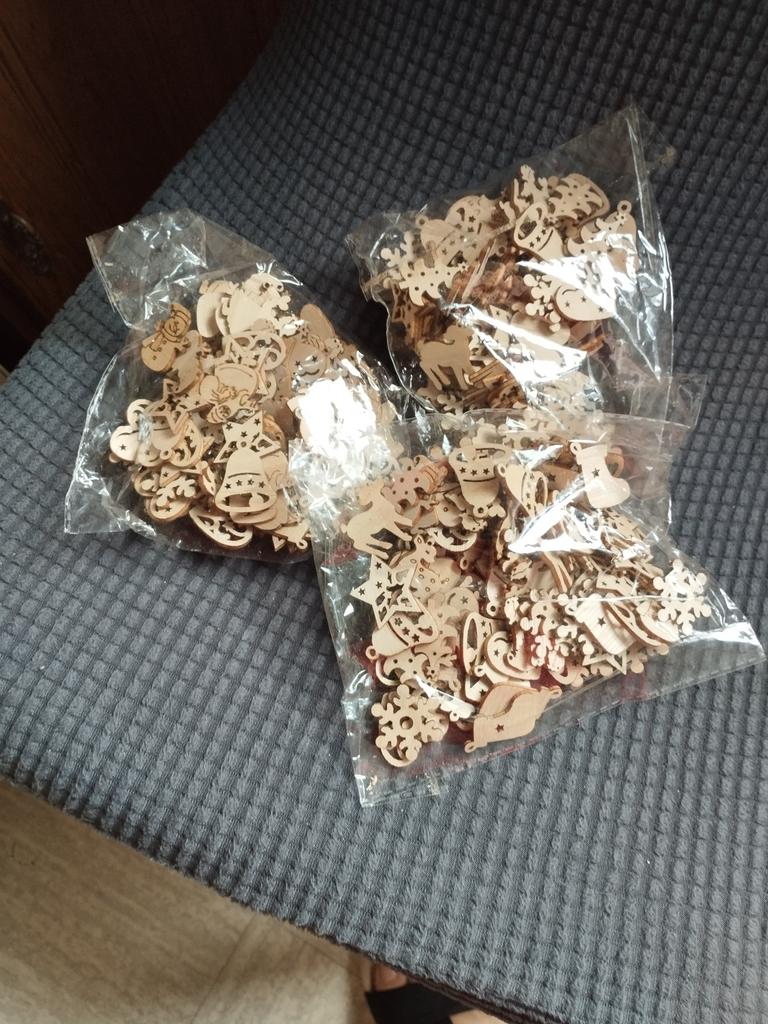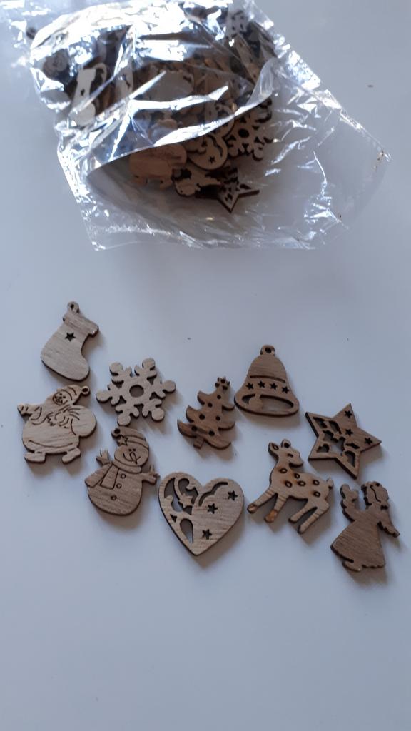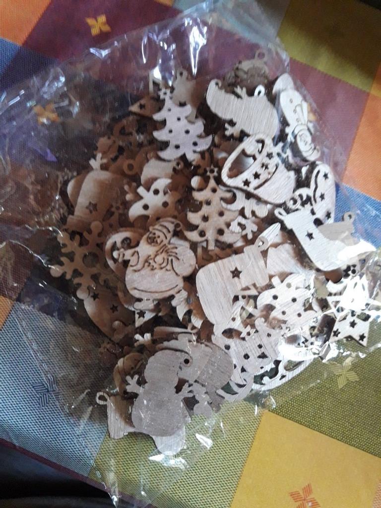 Decoração de Natal de madeira fofa. Madeira real - bem processada e trabalhada de forma limpa - mas muito pequena. Do meu ponto de vista, é principalmente adequado para decorar presentes ou arranjos muito pequenos. Mas preço bom para 100 peças 🎄🎄🎄