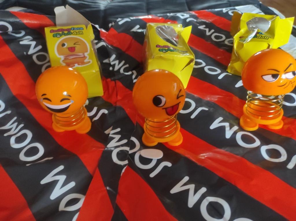 Enfeites de carro rosto sorridente primavera boneca expressão pacote brinquedos balançou sua cabeça acessórios do carro