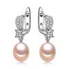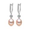 LSOOYH Cubic Zirconia Hoop Clip Brincos Pérola Jóias Natural Brincos de Pérola de Água Doce Para Mulheres