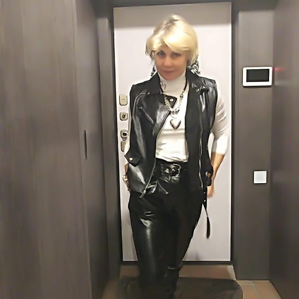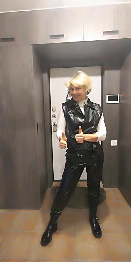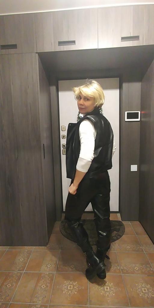 A jaqueta de couro me cai muito bem