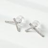 Les Trésors De Lily [N3019] - Brincos de Prata 'Cruz' Brancos - 8x6 mm