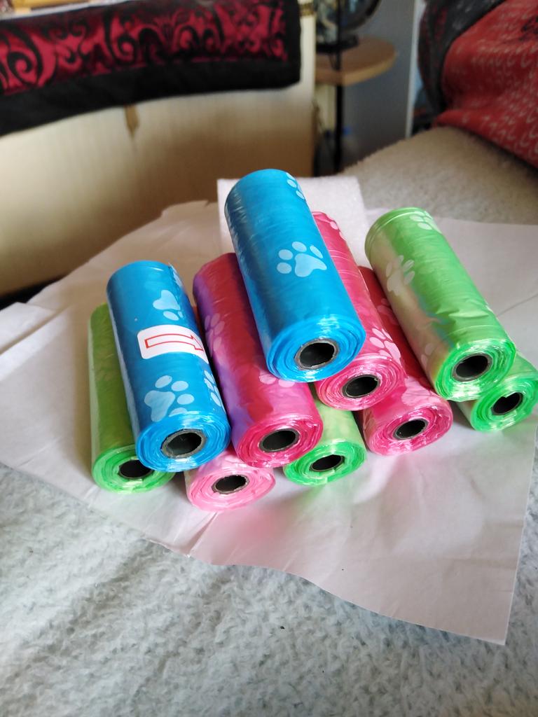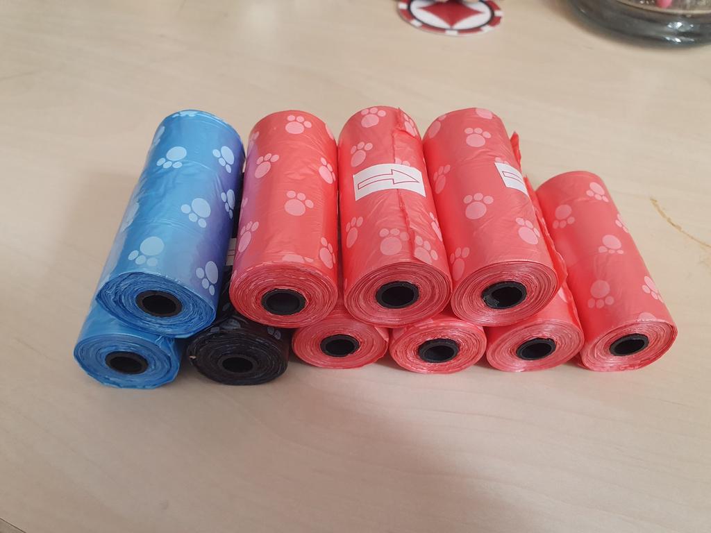 Sacos de cocô coloridos muito bonitos. A qualquer momento