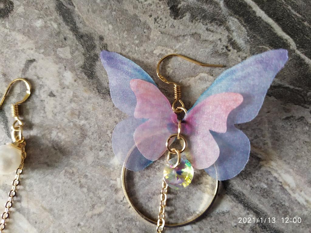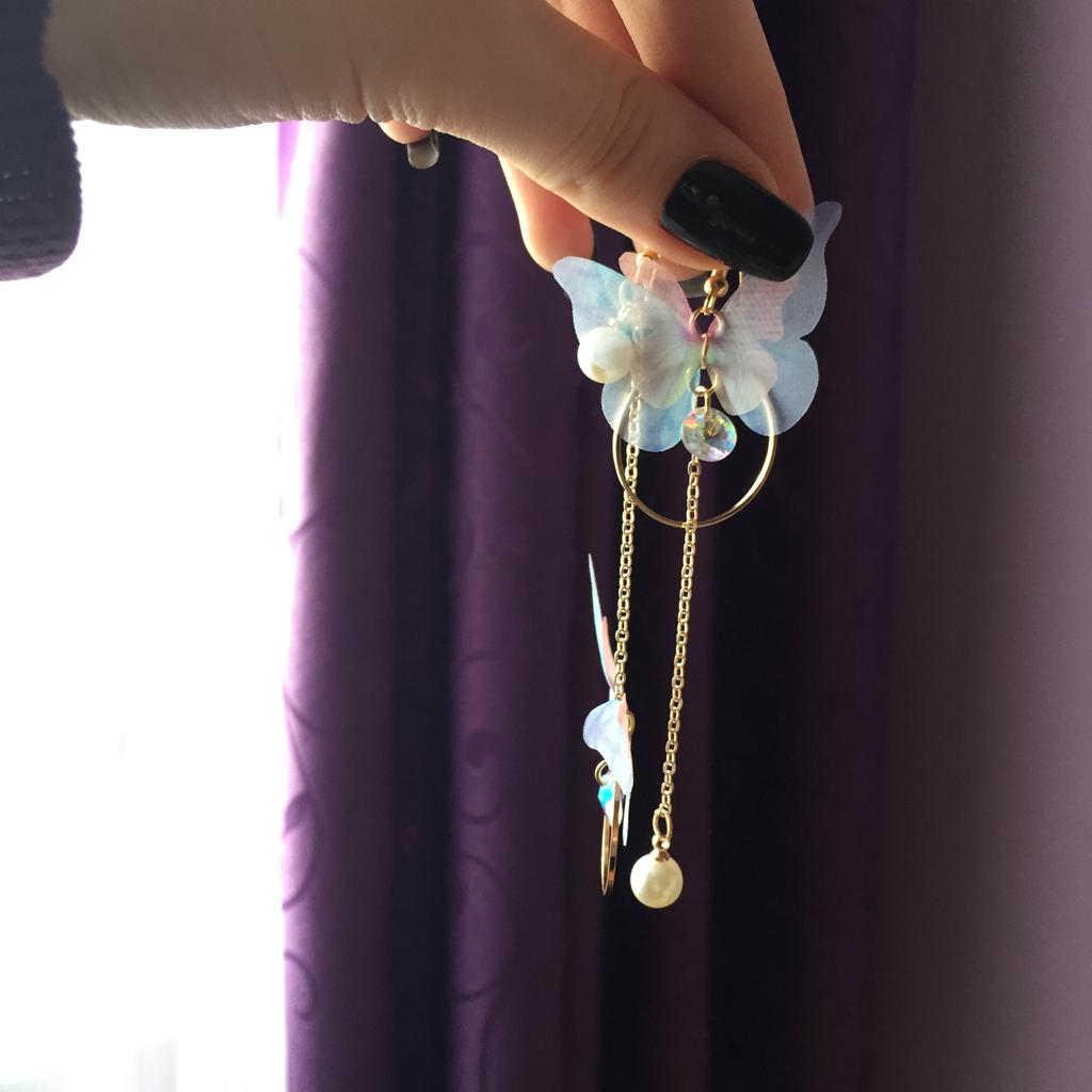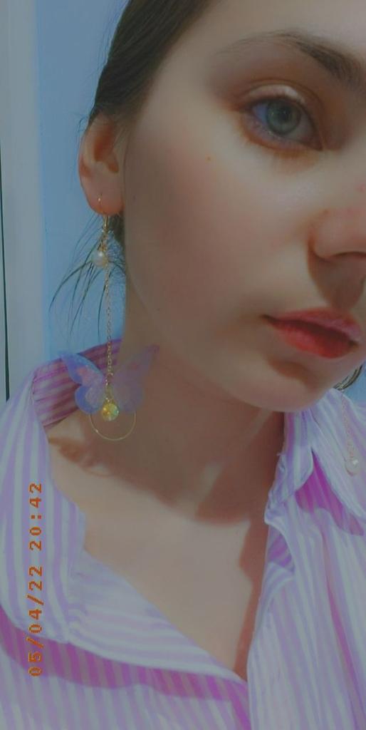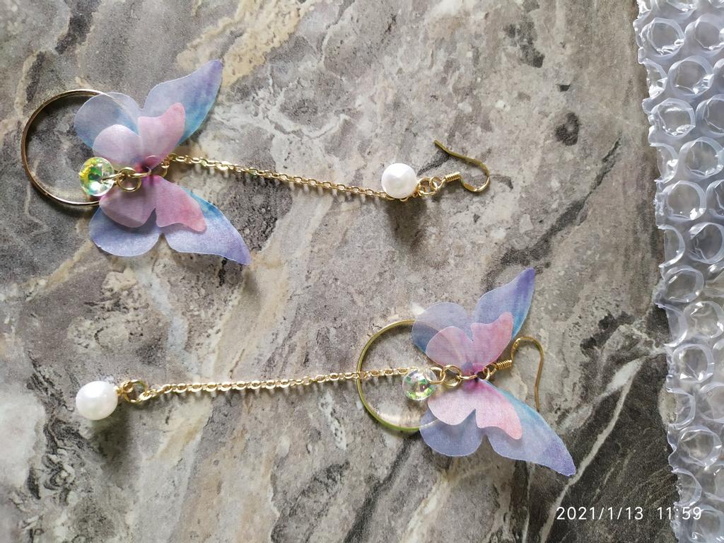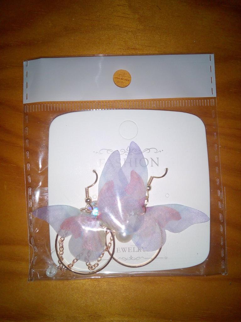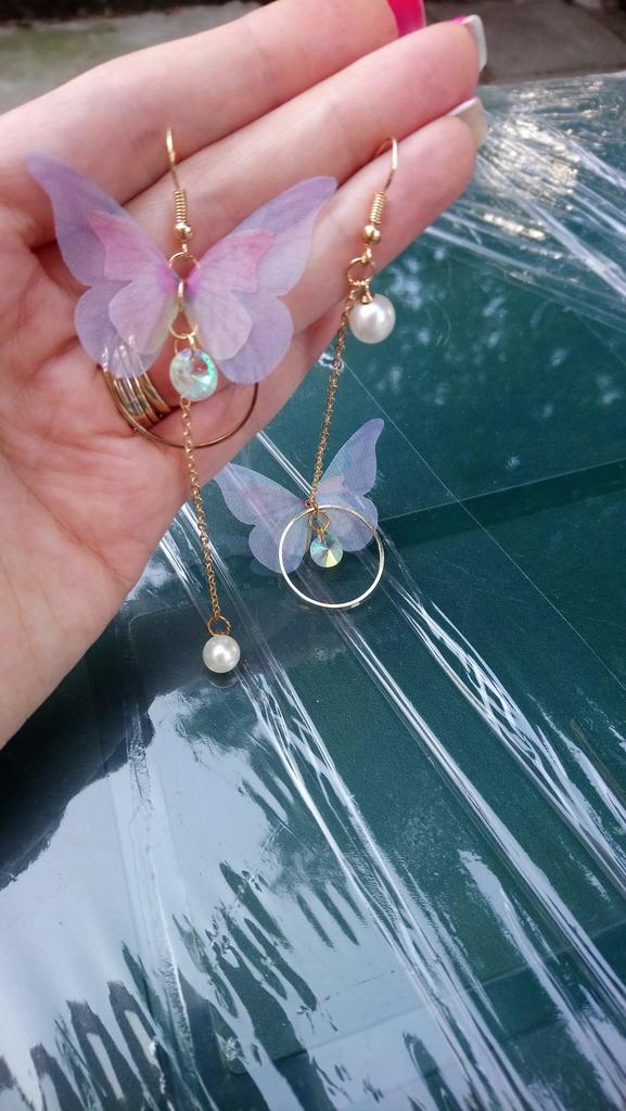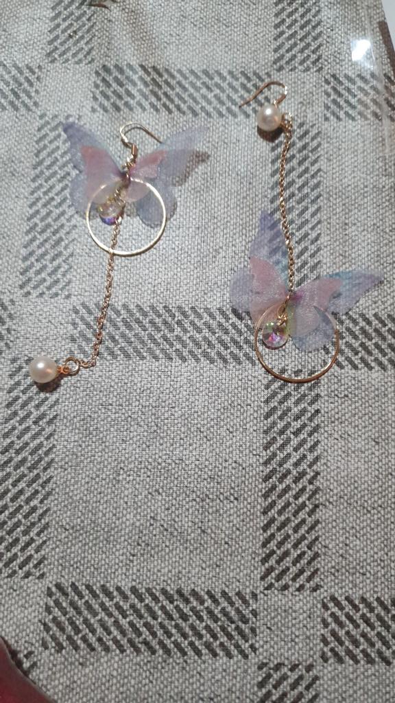 Eles viajaram para o Oblast de Poltava por cerca de um mês. Os brincos são lindos, delicados e, a princípio, tudo conforme prometido. A única coisa é que as asas das borboletas estavam um pouco amassadas, enfiaram-nas às pressas num saco. Vou tentar endireitar com um ferro. Asas feitas de tecido denso. Assemelha-se a uma rede mosquiteira, mantém a sua forma. Os pulmões são bonitos. Estou satisfeito com o produto. Obrigado ❤️