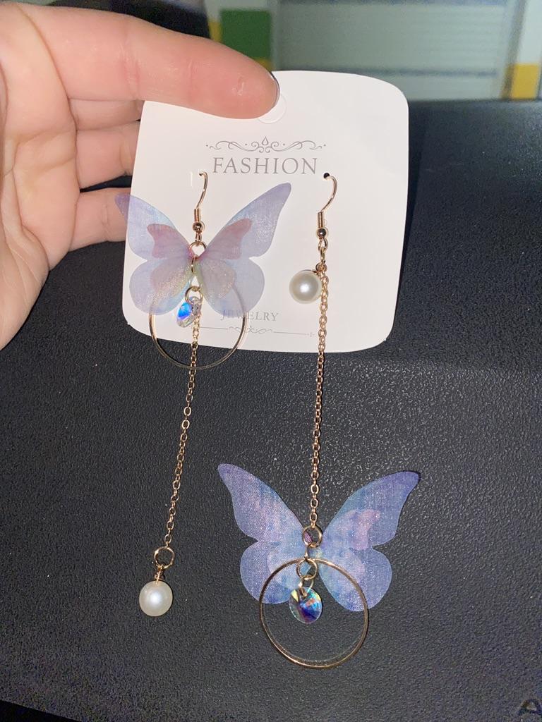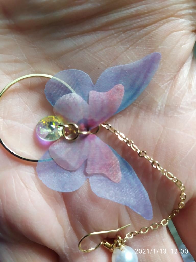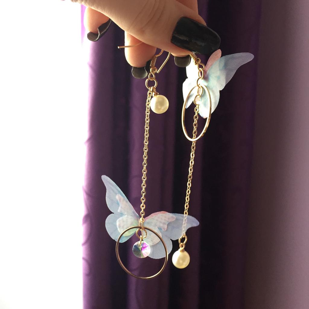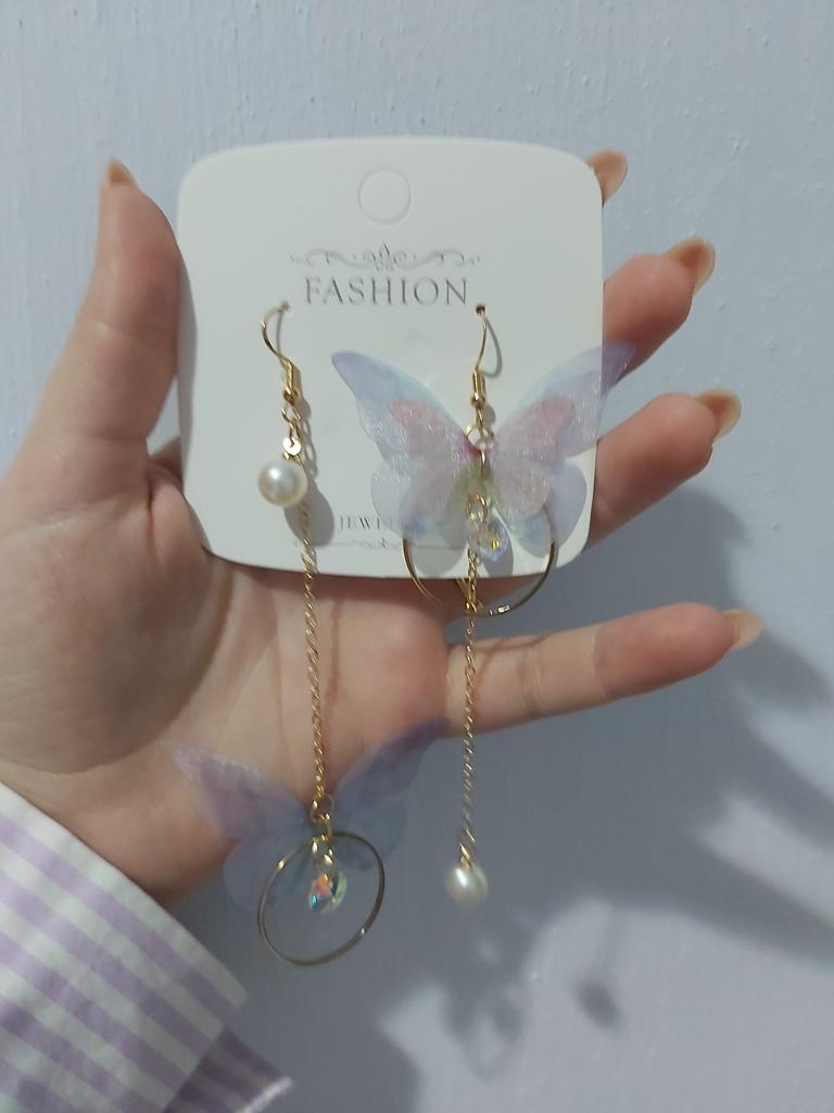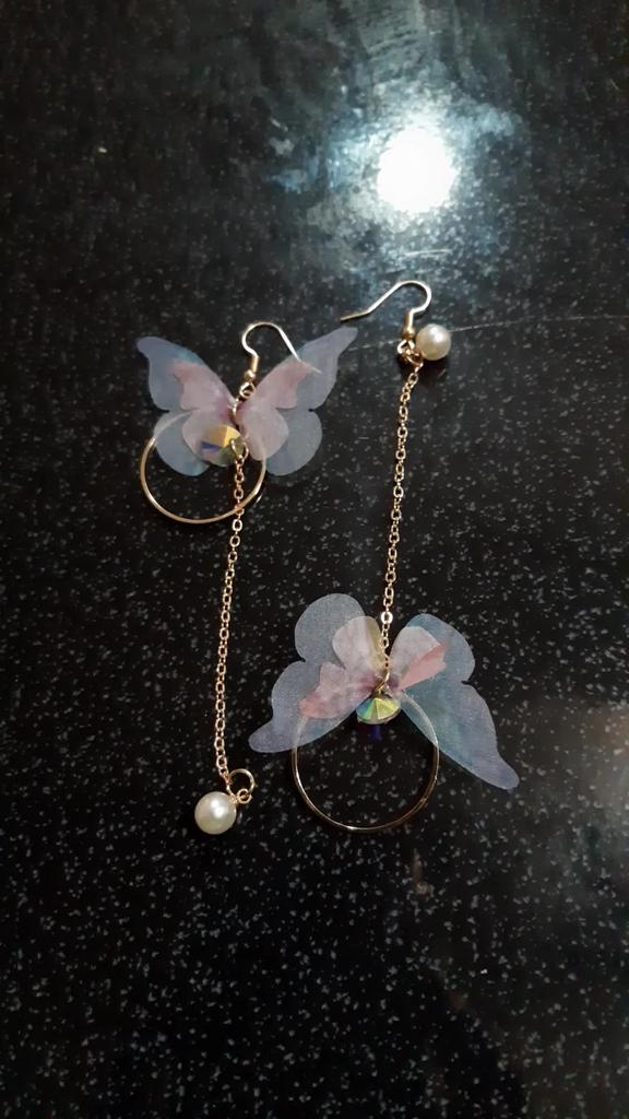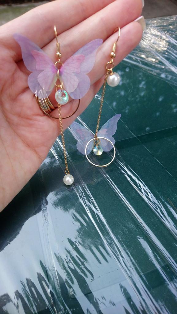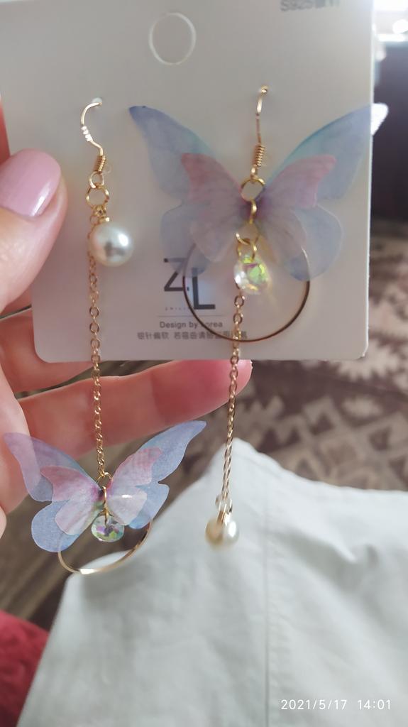 Eles viajaram para o Oblast de Poltava por cerca de um mês. Os brincos são lindos, delicados e, a princípio, tudo conforme prometido. A única coisa é que as asas das borboletas estavam um pouco amassadas, enfiaram-nas às pressas num saco. Vou tentar endireitar com um ferro. Asas feitas de tecido denso. Assemelha-se a uma rede mosquiteira, mantém a sua forma. Os pulmões são bonitos. Estou satisfeito com o produto. Obrigado ❤️