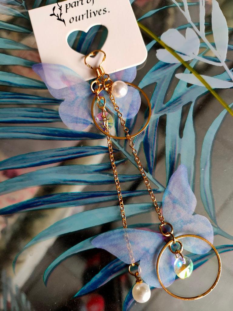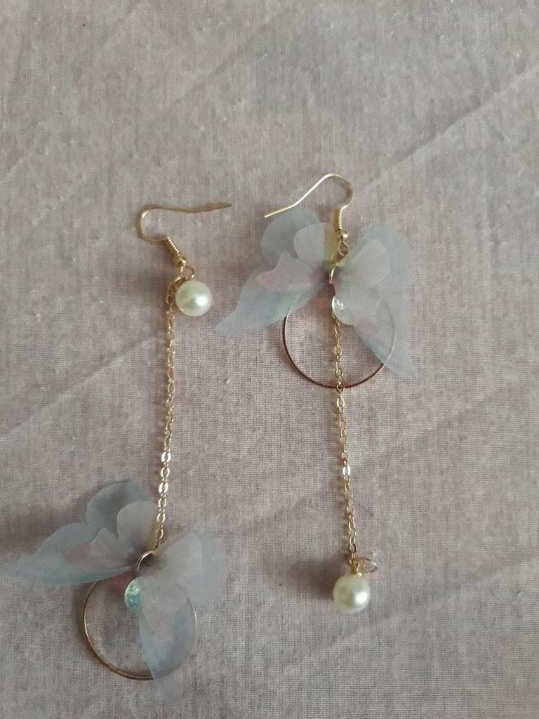 São brincos especiais. A borboleta é feita de tecido.