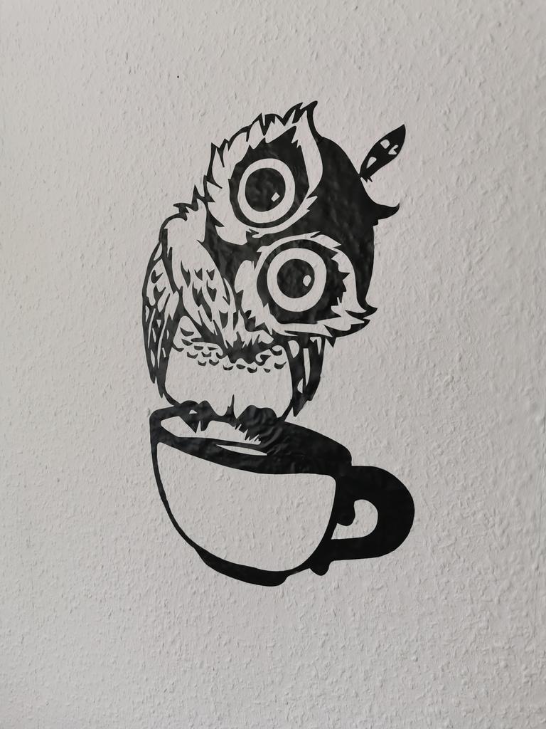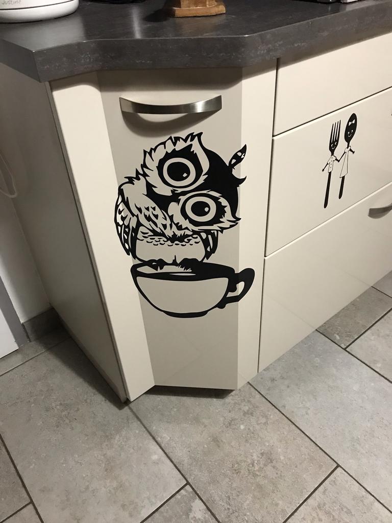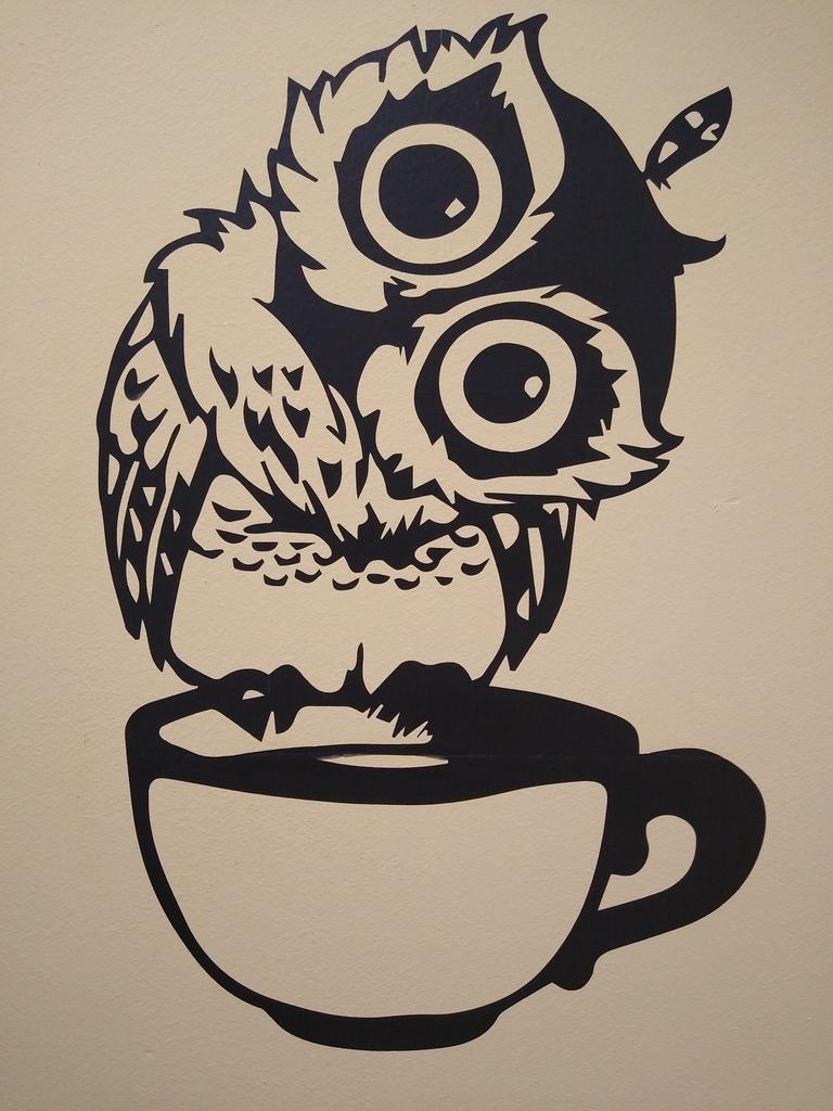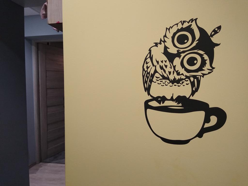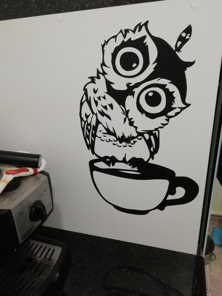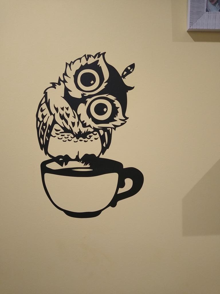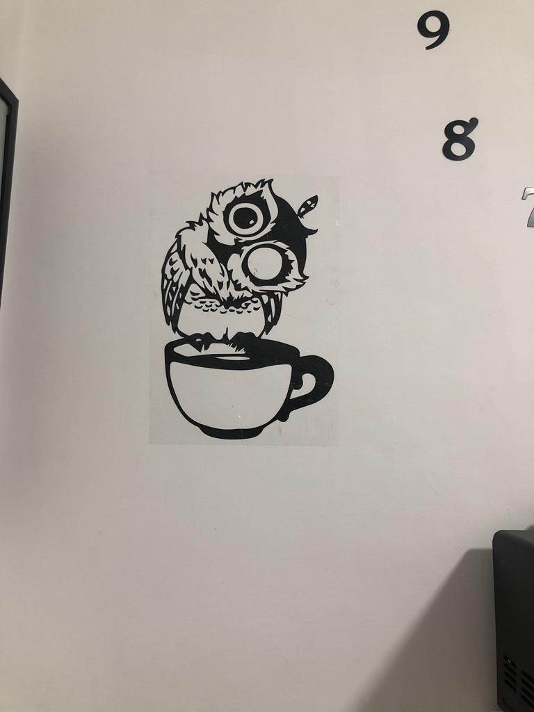 Engraçado desenho animado coruja xícara de chá café para cozinha adesivos decoração de casa adesivo de parede vivo
