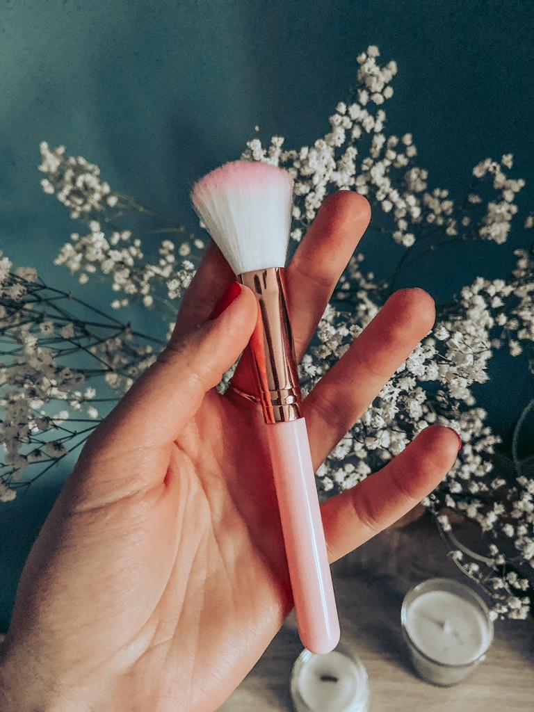Pincel fixo para blush, pó de maquiagem, fibra de cabelo, cabo de plástico, ferramenta de maquiagem para iniciantes