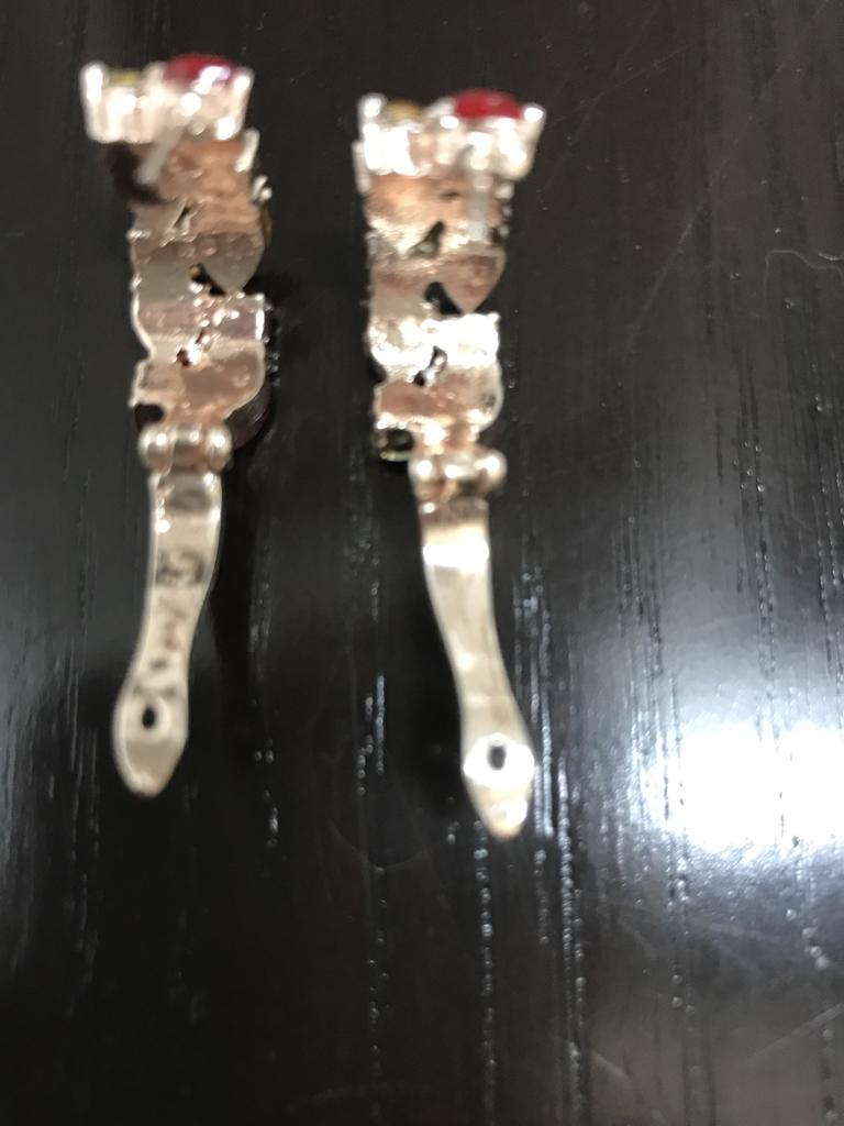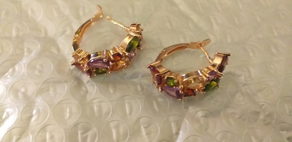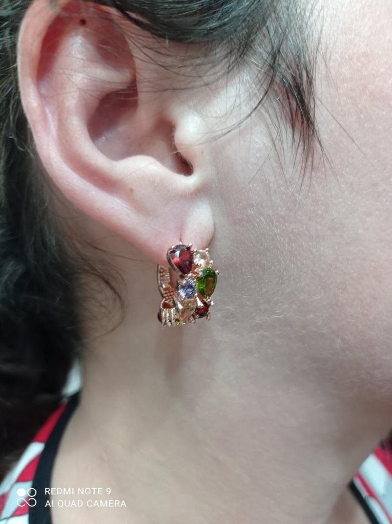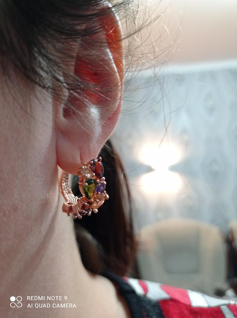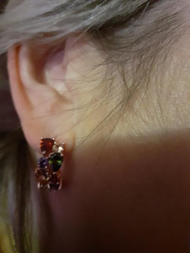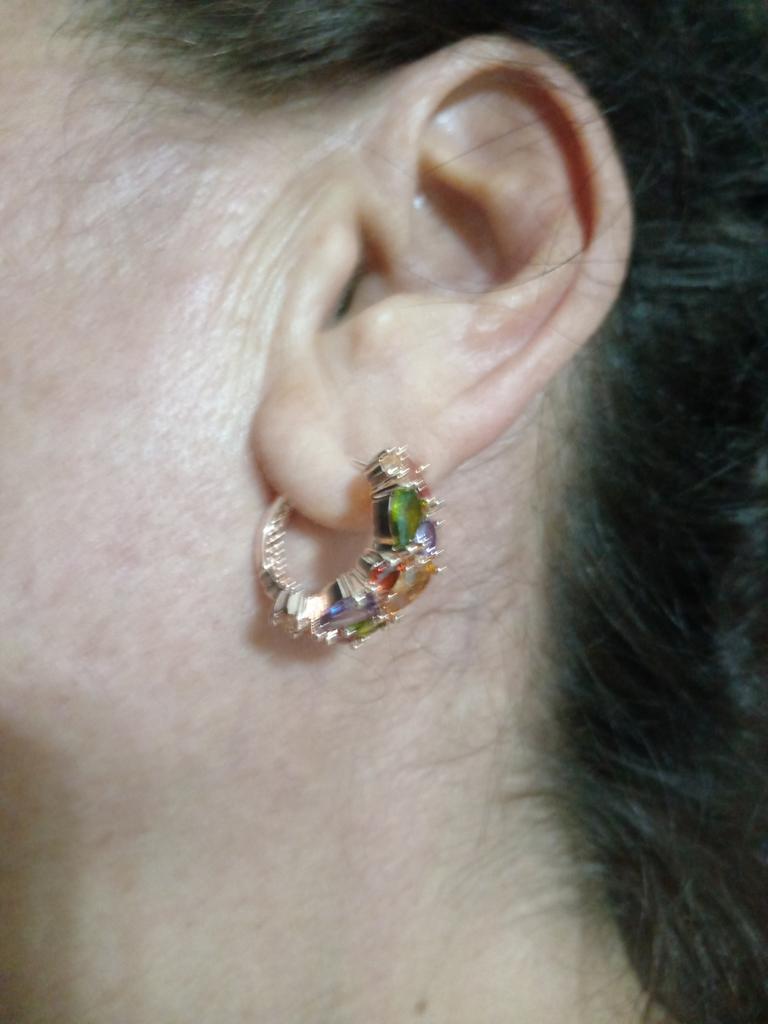Eles parecem bons, mas são MUITO grandes. Eu tinha uns parecidos, queria que fossem assim, mas estes são muito grandes. Se fossem um pouco menores, pareceriam ouro com pedras naturais. Você pode usá-los com o cabelo solto. 😄A qualidade dos fechos deixa muito a desejar. A parte inferior está ativa, mas ainda consegui ajustá-la.