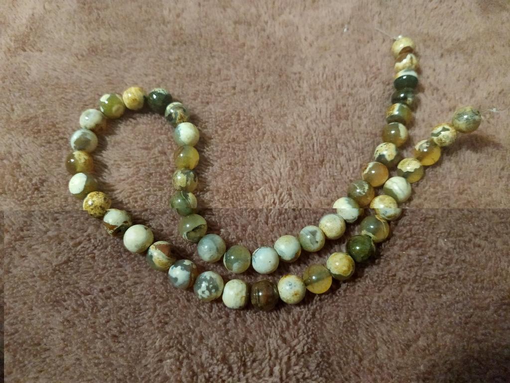Adorável profundidade de cor e padrões. Existem algumas contas que não são perfeitamente redondas, mas acho que isso as faz parecer muito naturais. Recebi exatamente 38 contas neste fio. Muito bom valor eu acho. 🙂👍🏽🌈