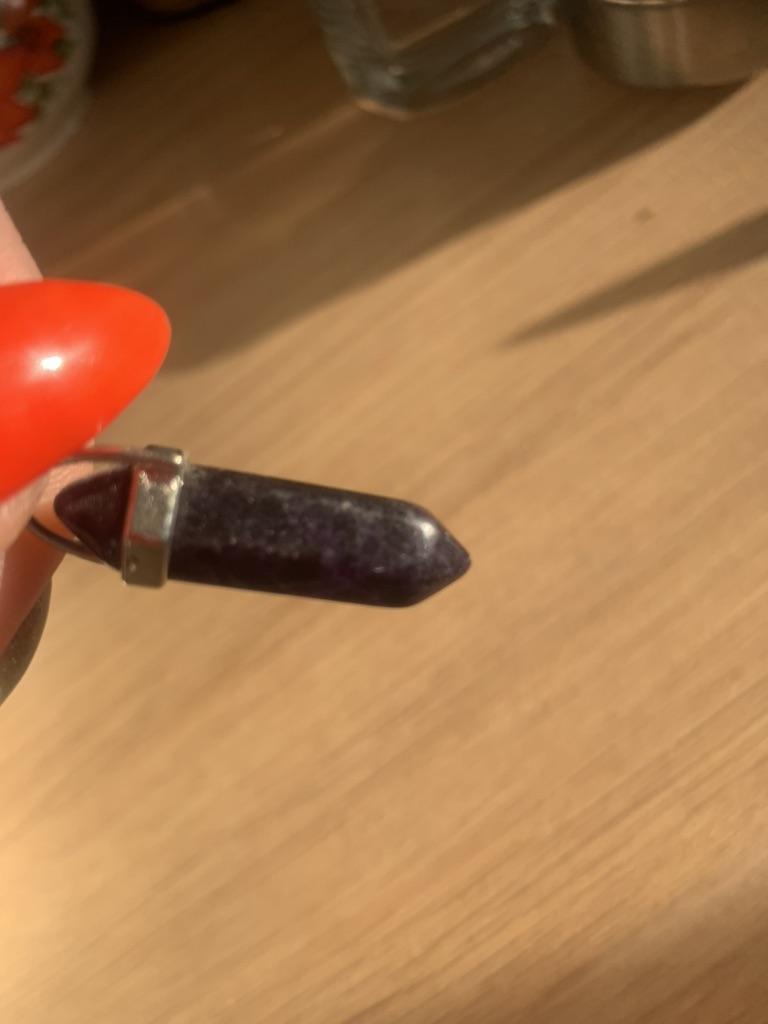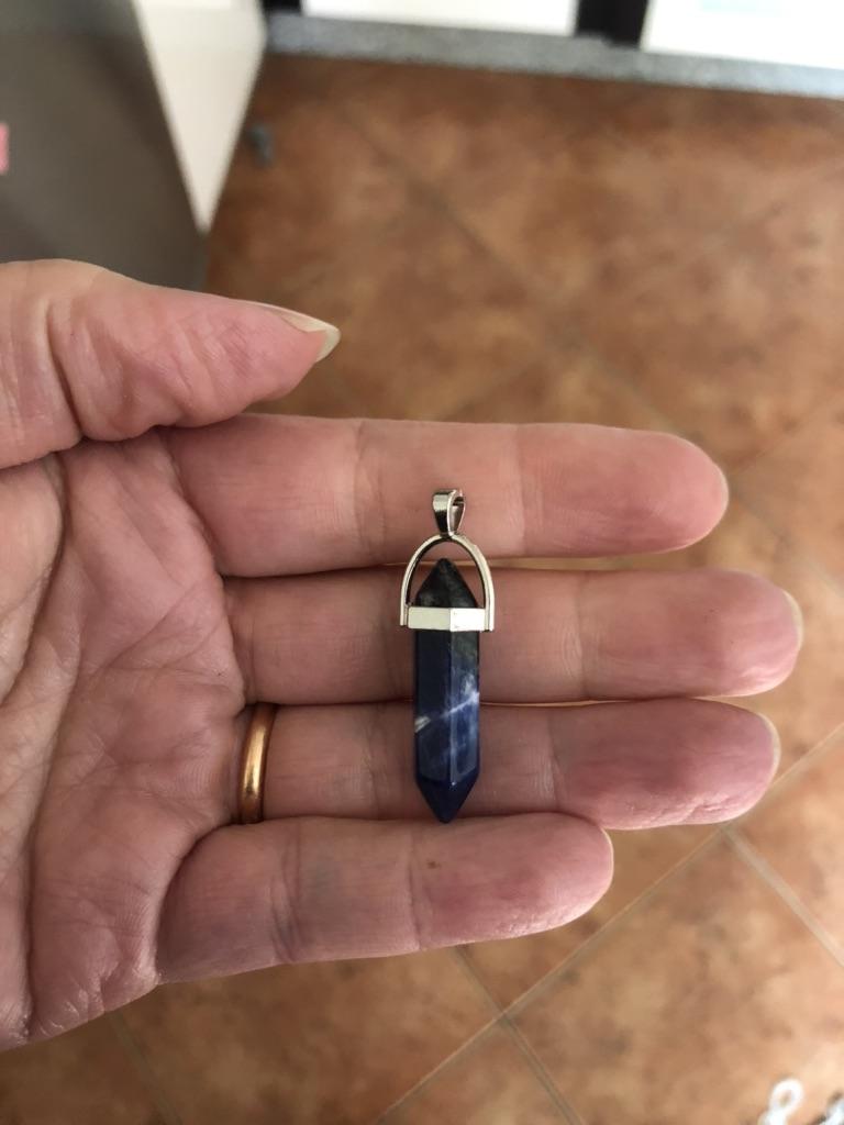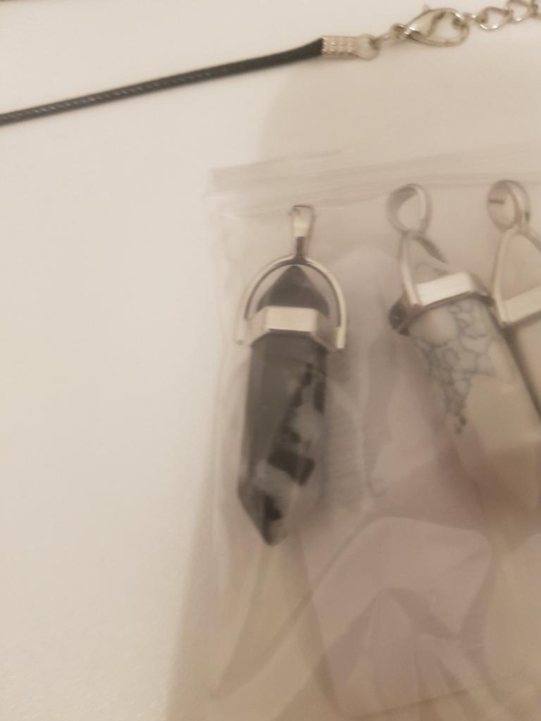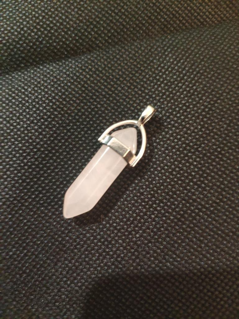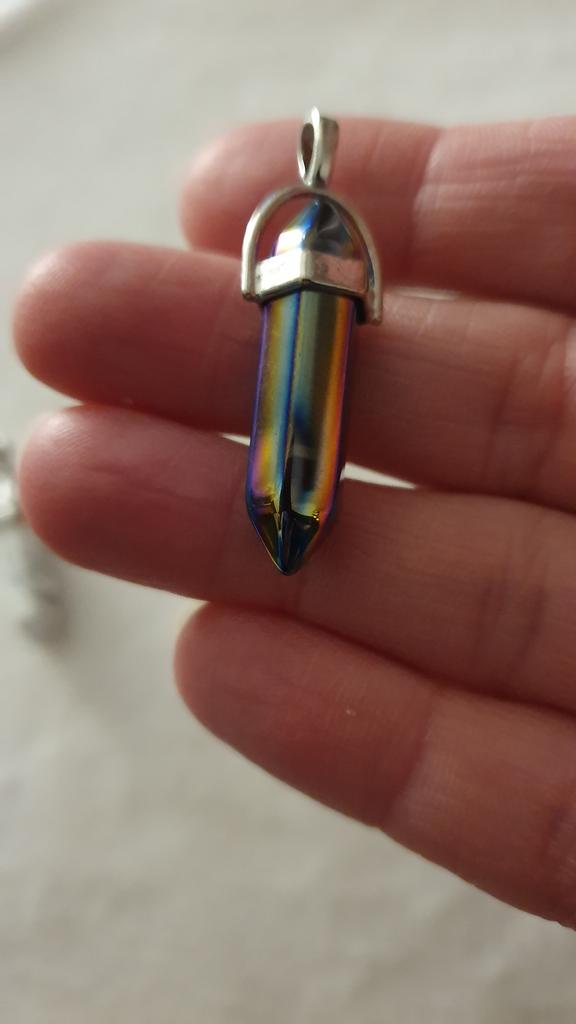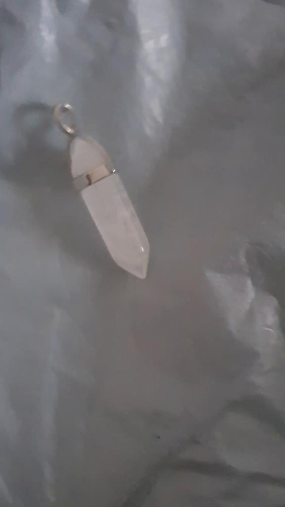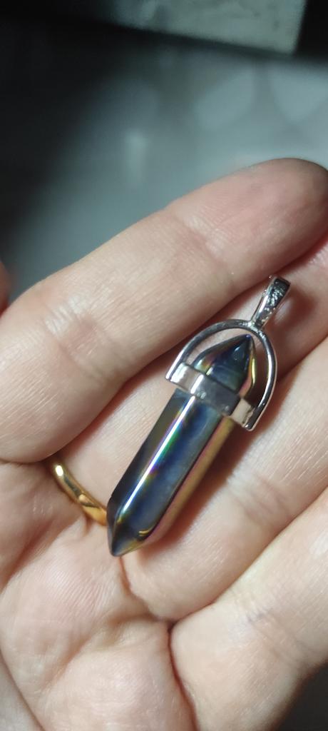 Bela pequena jóia. O quartzo está um pouco torto, mas tudo bem. Não faço ideia se é realmente quartzo, mas minha filha está encantada, ela prendeu em um fio de couro.
