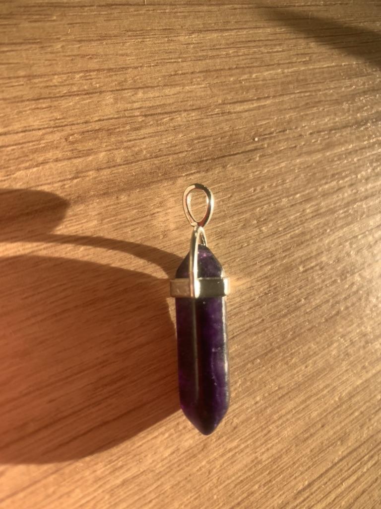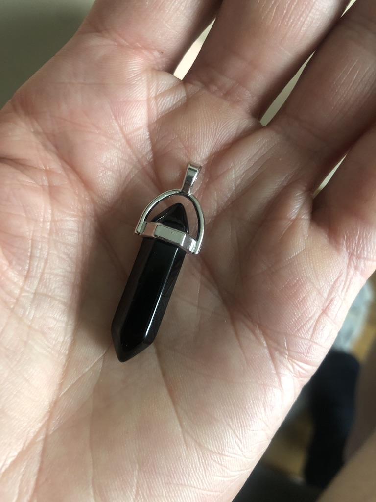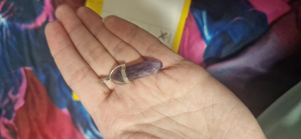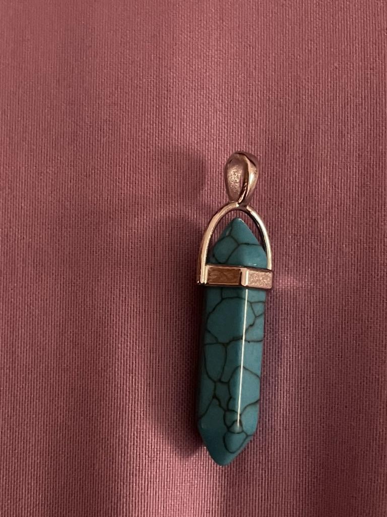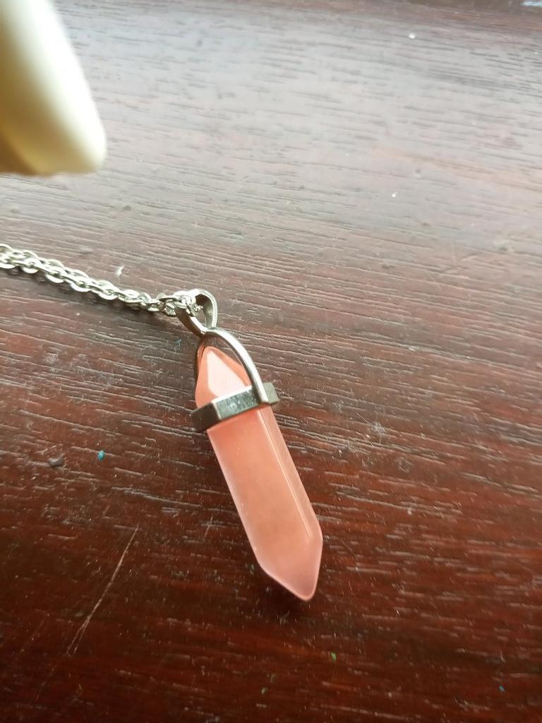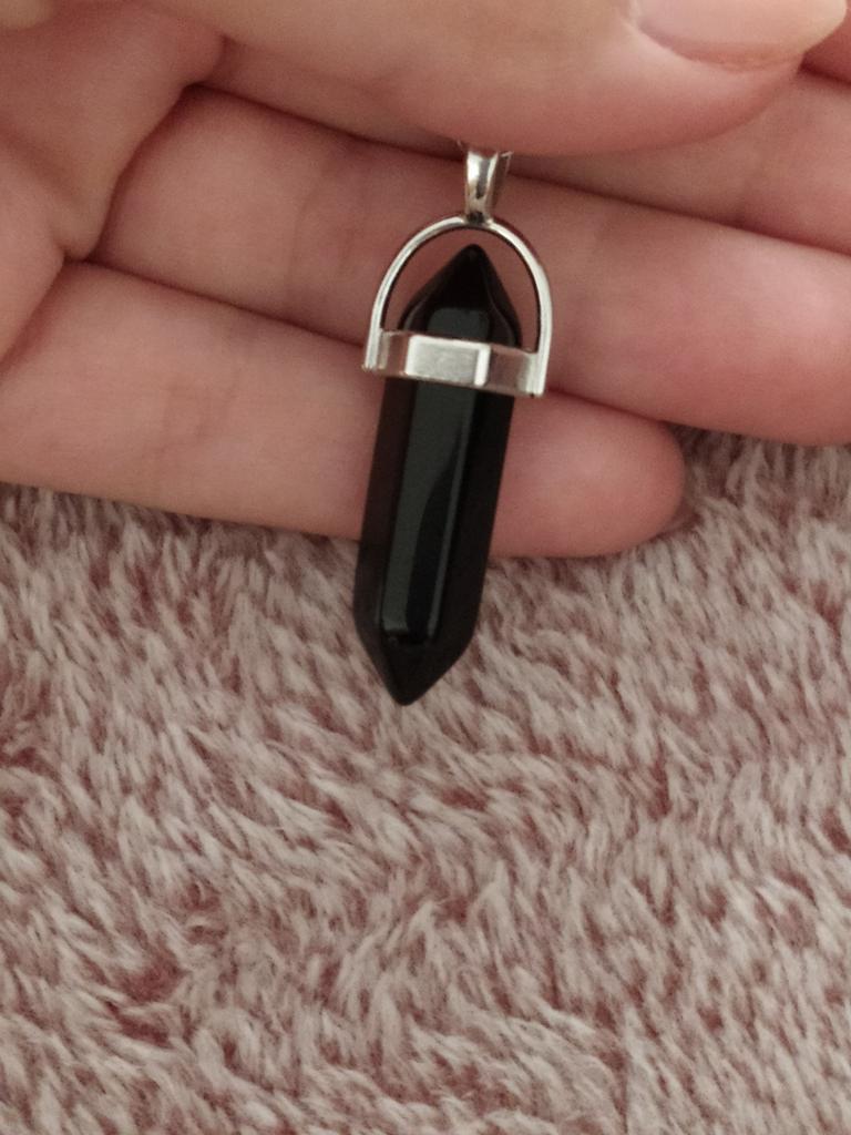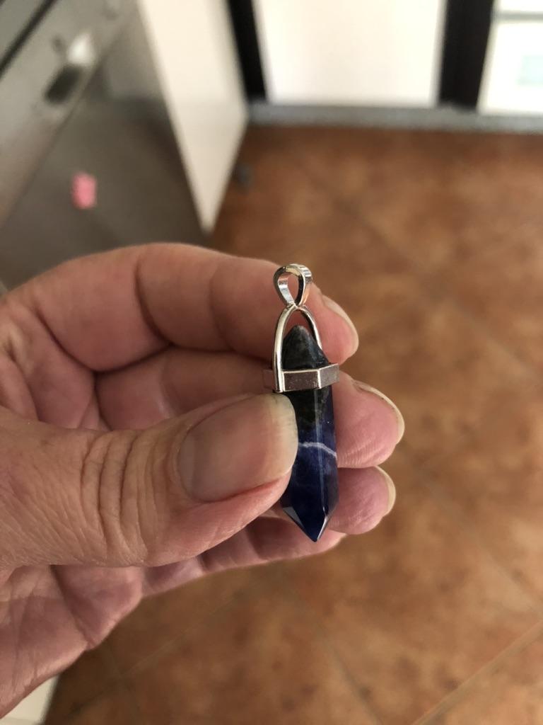 Bela pequena jóia. O quartzo está um pouco torto, mas tudo bem. Não faço ideia se é realmente quartzo, mas minha filha está encantada, ela prendeu em um fio de couro.