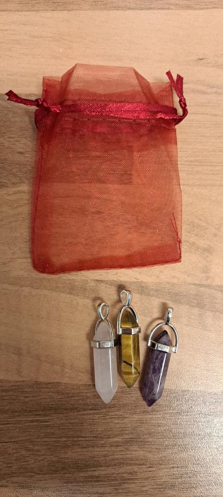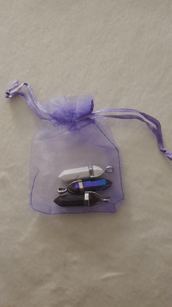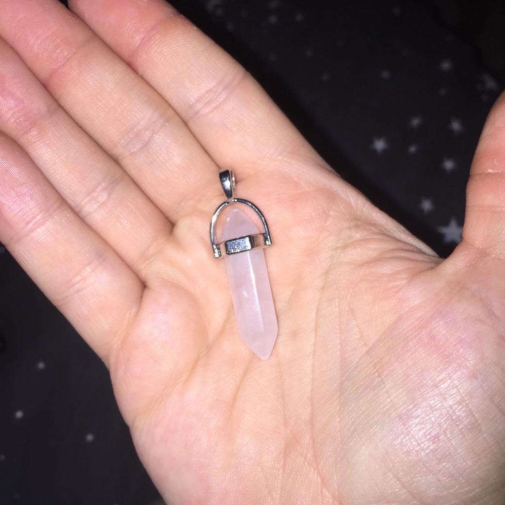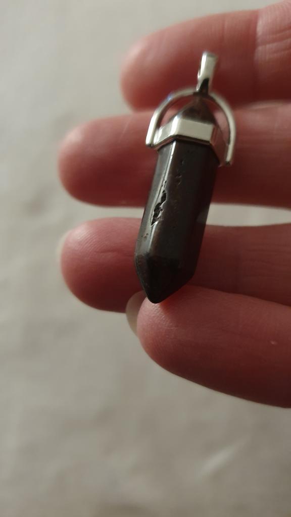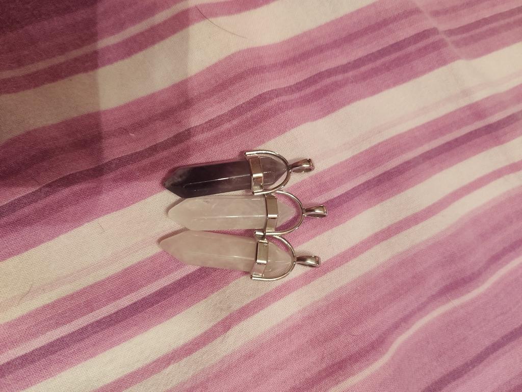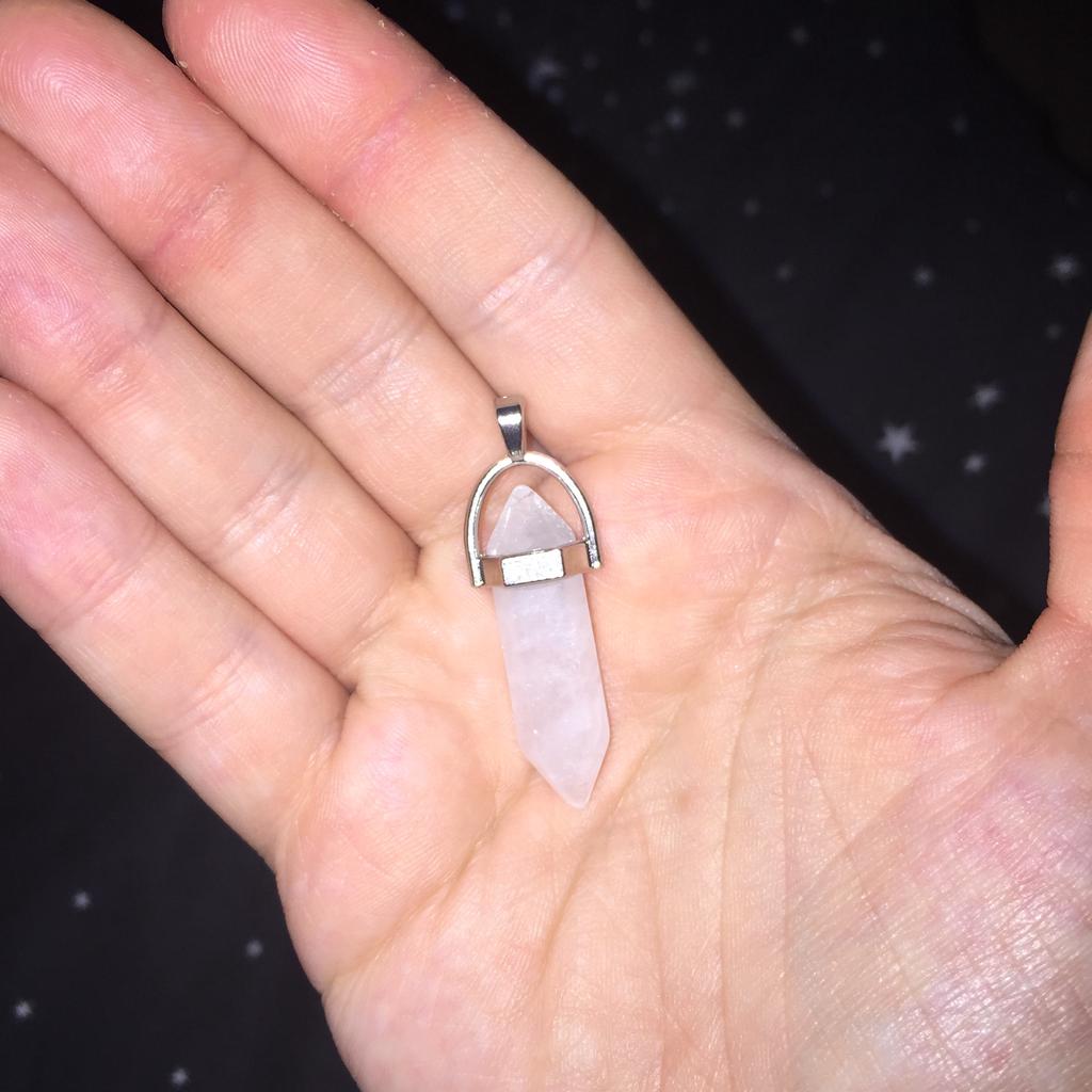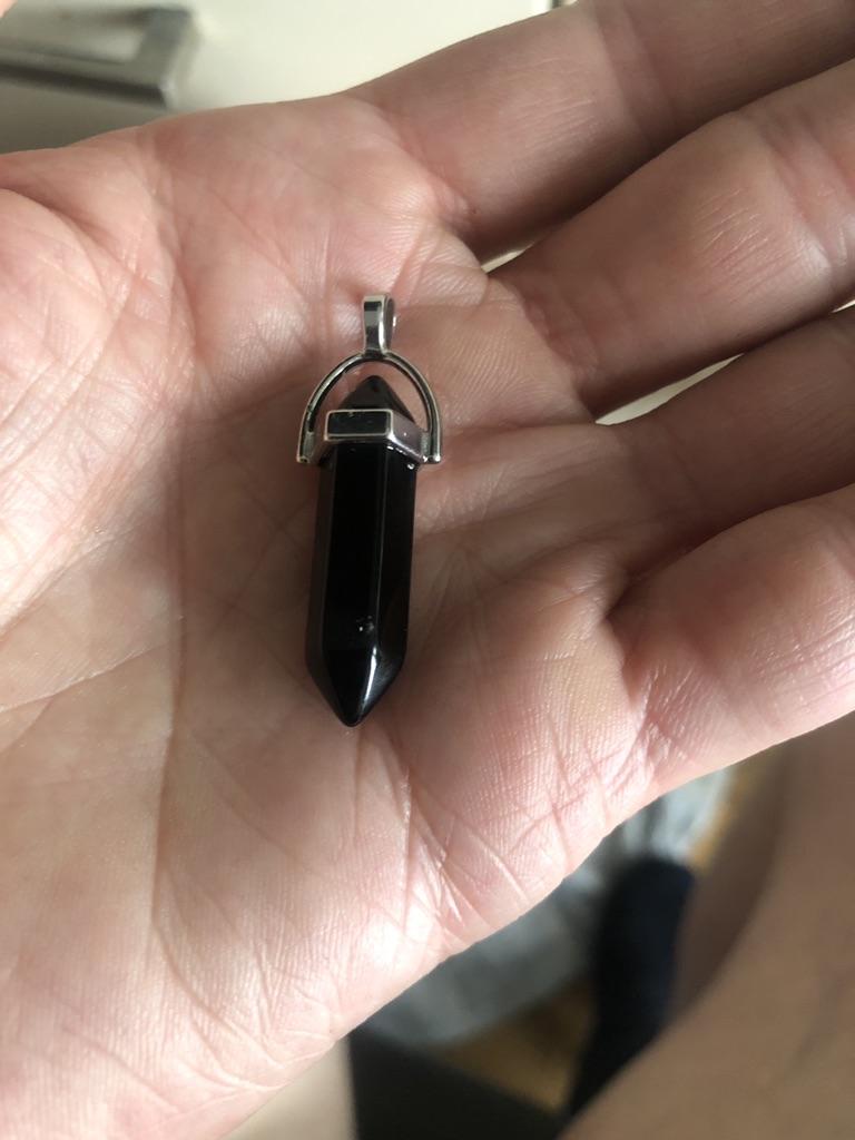 Bela pequena jóia. O quartzo está um pouco torto, mas tudo bem. Não faço ideia se é realmente quartzo, mas minha filha está encantada, ela prendeu em um fio de couro.
